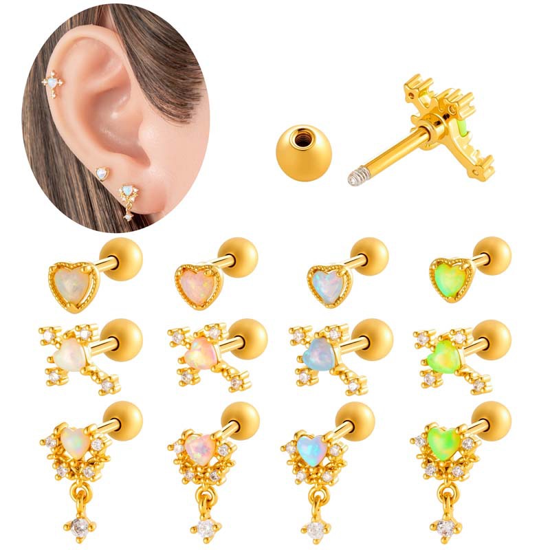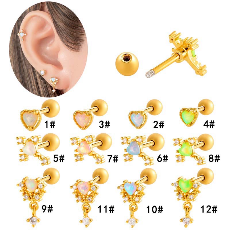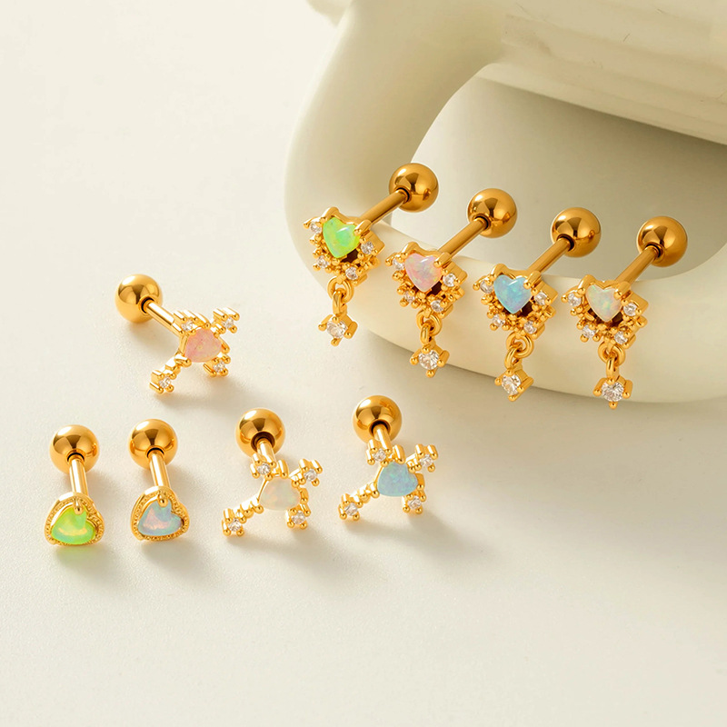 Bijoux de piercing d'oreille en acier inoxydable, Acier inoxydable 304, avec Opale & laiton, Placage de couleur d'or, bijoux de mode & pavé de micro zircon, plus de couleurs à choisir, Vendu par paire