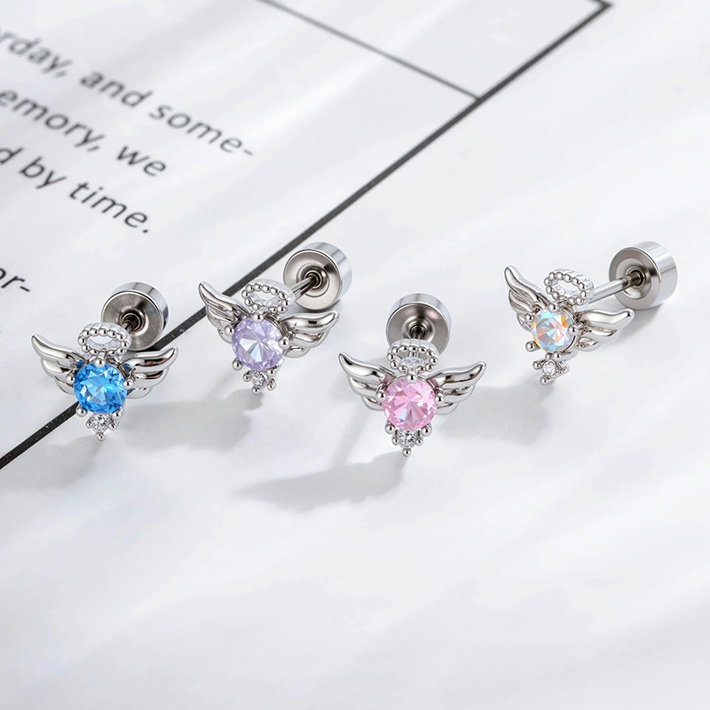 Bijoux de piercing d'oreille en acier inoxydable, Placage, avec zircone cubique, couleurs mélangées Vendu par PC