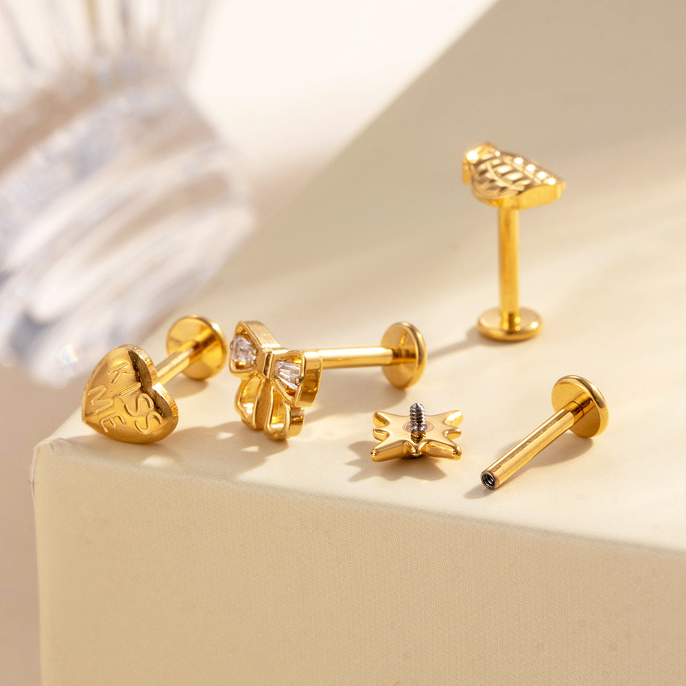 Bijoux de piercing d'oreille en acier inoxydable, Alliage de titane, Placage de couleur d'or, bijoux de mode & pavé de micro zircon, plus de couleurs à choisir, Vendu par PC