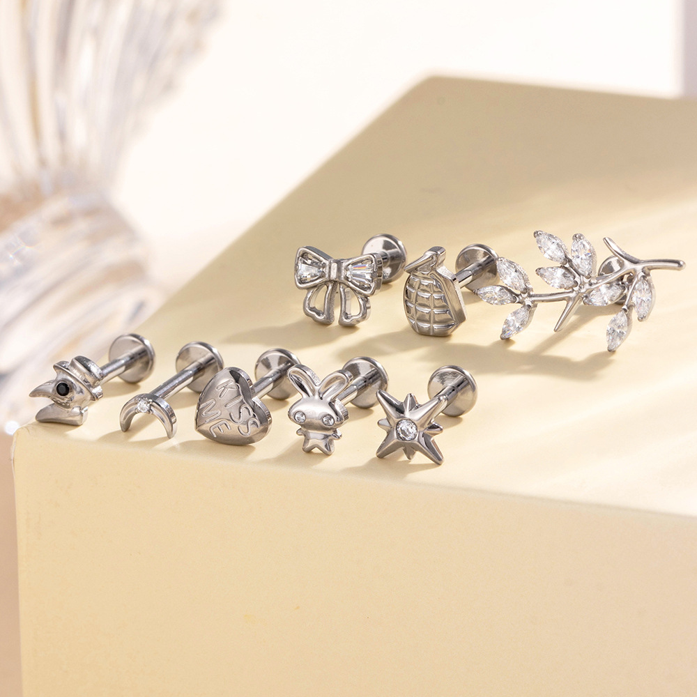 Bijoux de piercing d'oreille en acier inoxydable, Placage, avec zircone cubique, couleurs mélangées Vendu par PC