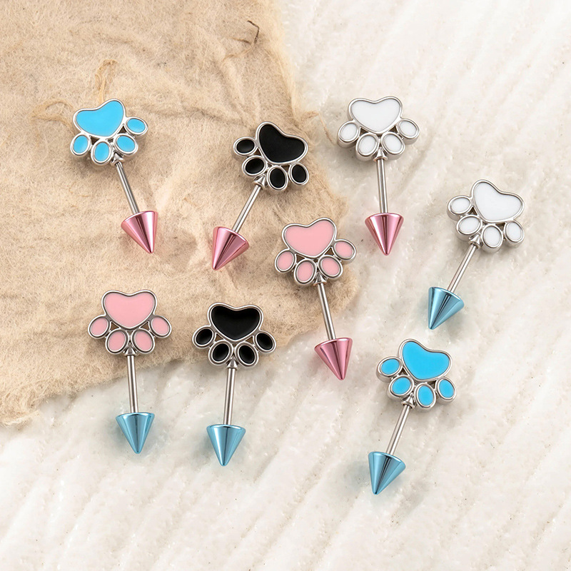 Bijoux de piercing d'oreille en acier inoxydable, avec colle, chat, plus de couleurs à choisir, Vendu par paire
