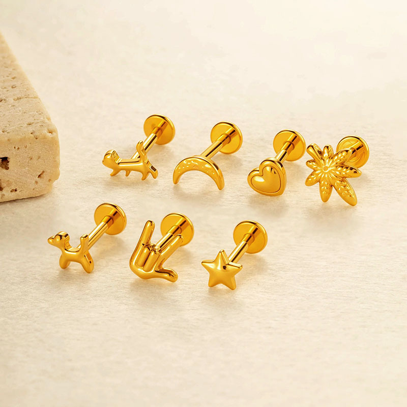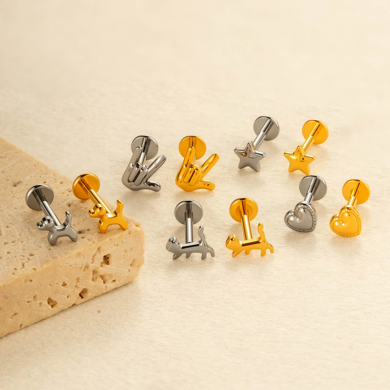 Bijoux de piercing d'oreille en acier inoxydable, avec colle, chat, plus de couleurs à choisir, Vendu par paire