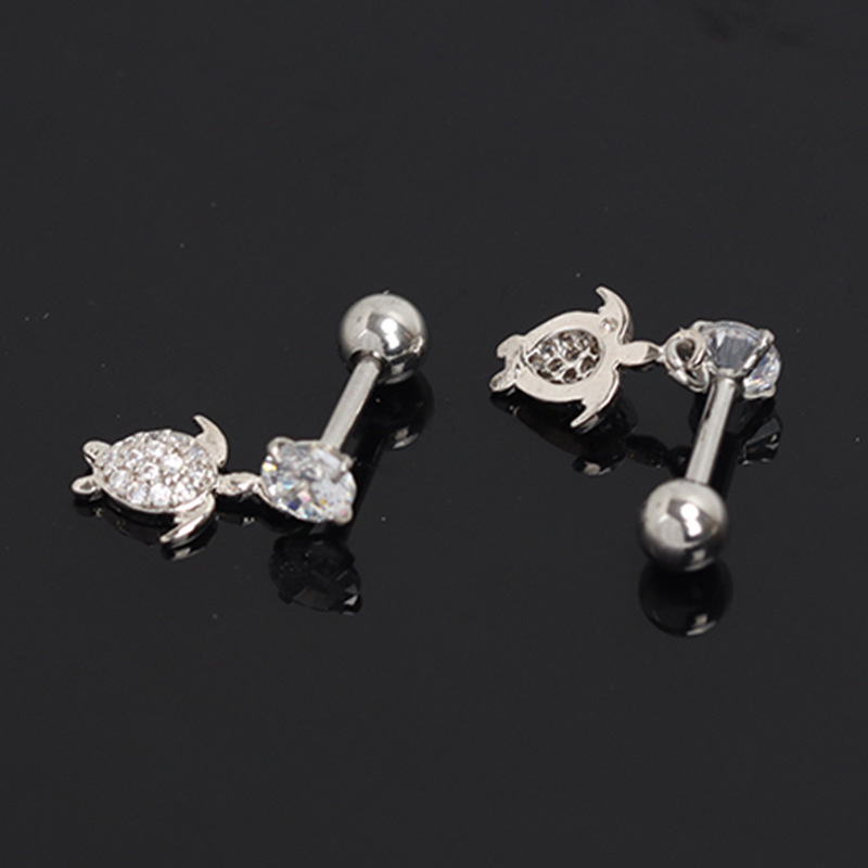 acier inoxydable piercing oreille, avec zircon cubique, unisexe, plus de couleurs à choisir, 1.2x6/3, Vendu par PC