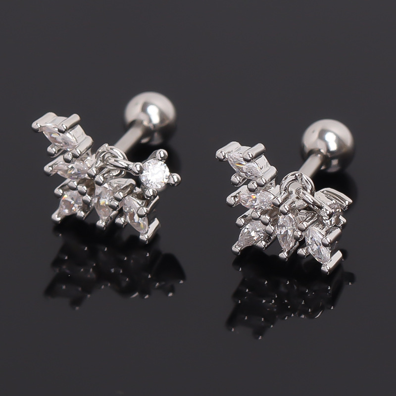 Bijoux de piercing d'oreille en acier inoxydable, Placage, avec zircone cubique, couleurs mélangées Vendu par PC