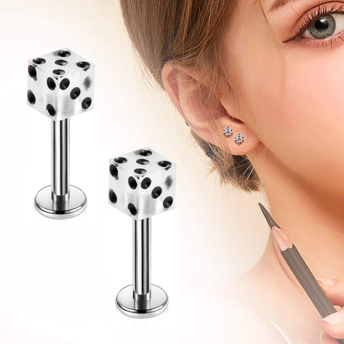 Bijoux de piercing d'oreille en acier inoxydable, acier inoxydable 316L, avec Acrylique, Placage de couleur argentée, bijoux de mode, couleurs mélangées, Vendu par PC