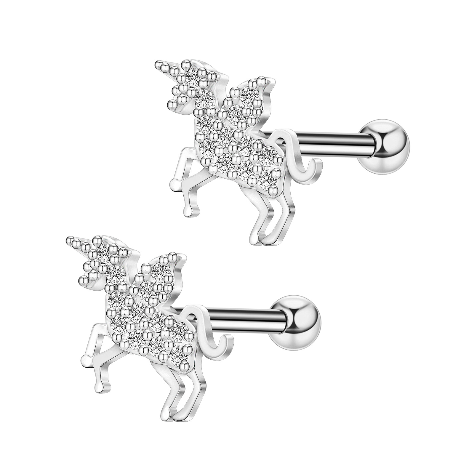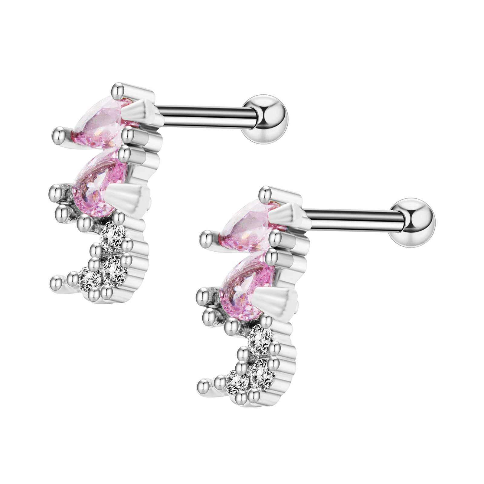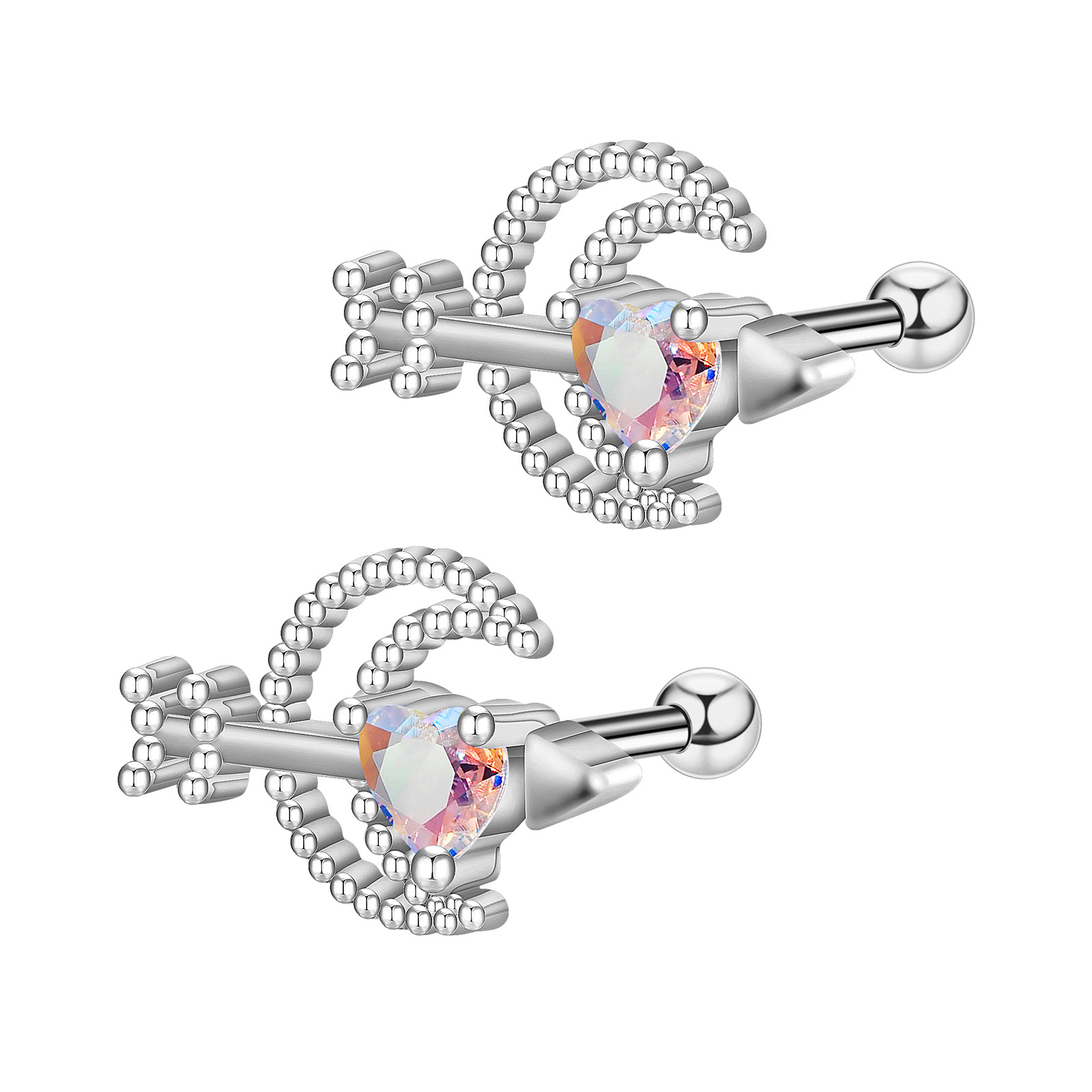 Bijoux de piercing d'oreille en acier inoxydable, Placage, avec zircone cubique, couleurs mélangées Vendu par PC