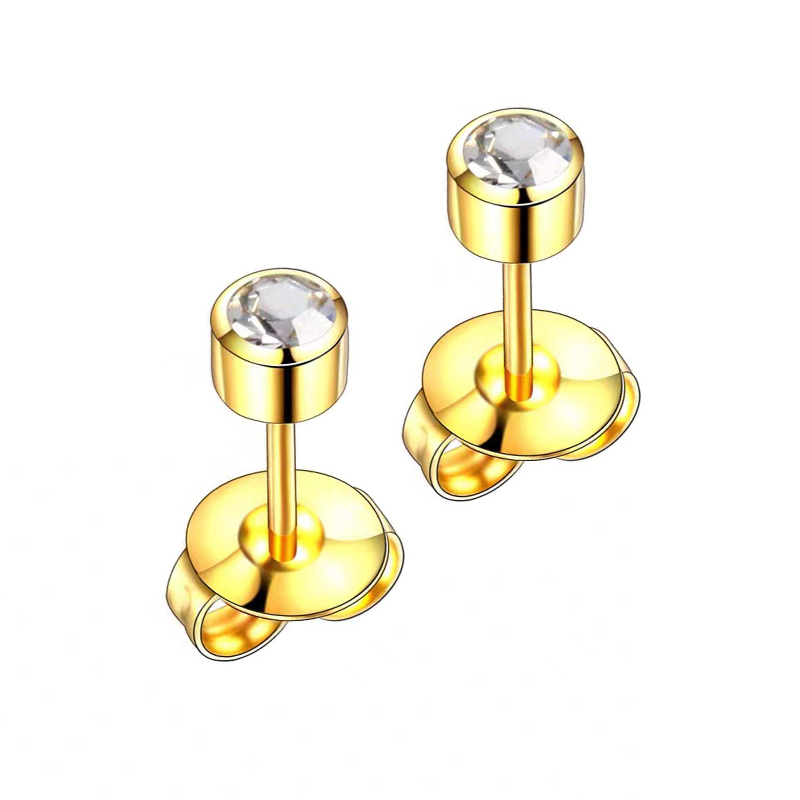Bijoux de piercing d'oreille en acier inoxydable, Acier inoxydable 304, avec cristal, Placage de couleur d'or, unisexe, Vendu par PC