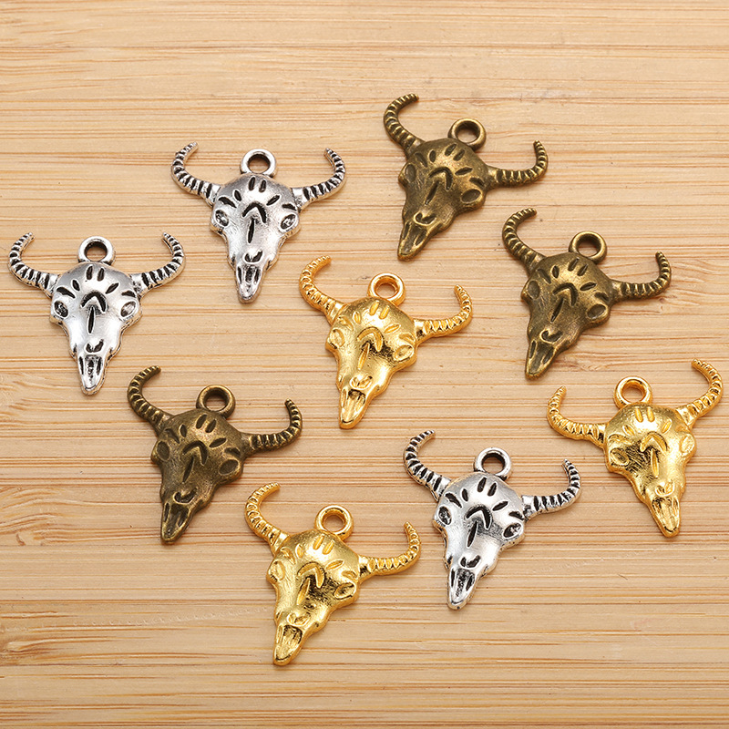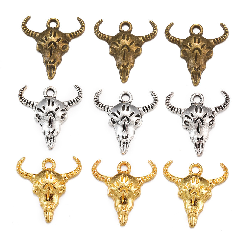 Bijoux pendentifs en Zinc alliage , alliage de zinc, bœuf, Placage, DIY, plus de couleurs à choisir, 21x20mm, Environ 100PC/sac, Vendu par sac