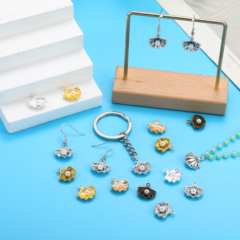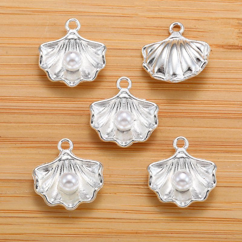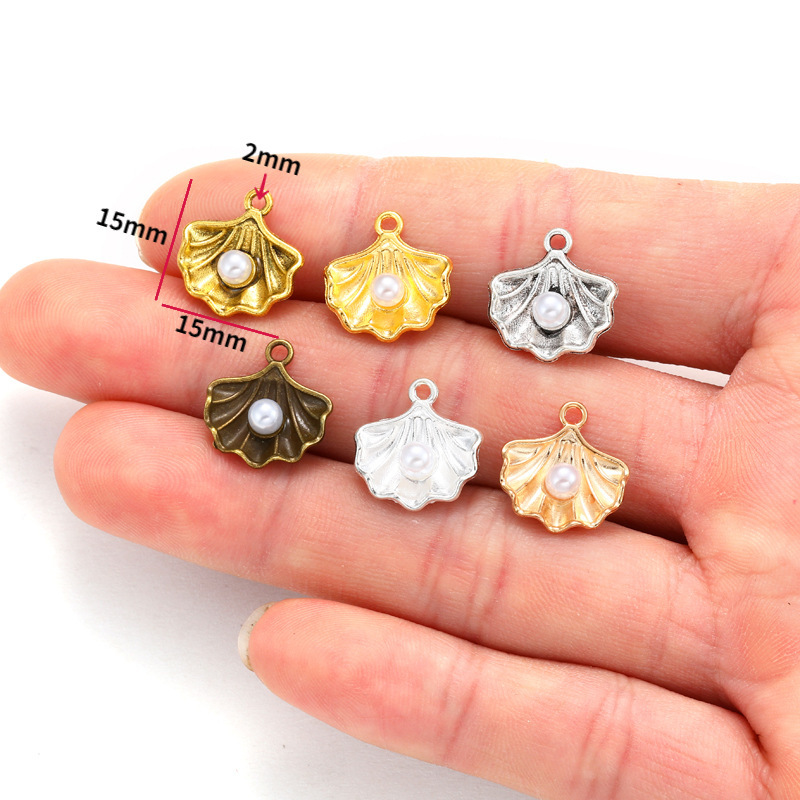 Bijoux pendentifs en Zinc alliage , alliage de zinc, avec perle de plastique, coquille, Placage, DIY, plus de couleurs à choisir, 15x15mm, Vendu par PC
