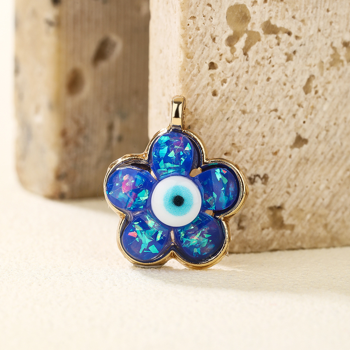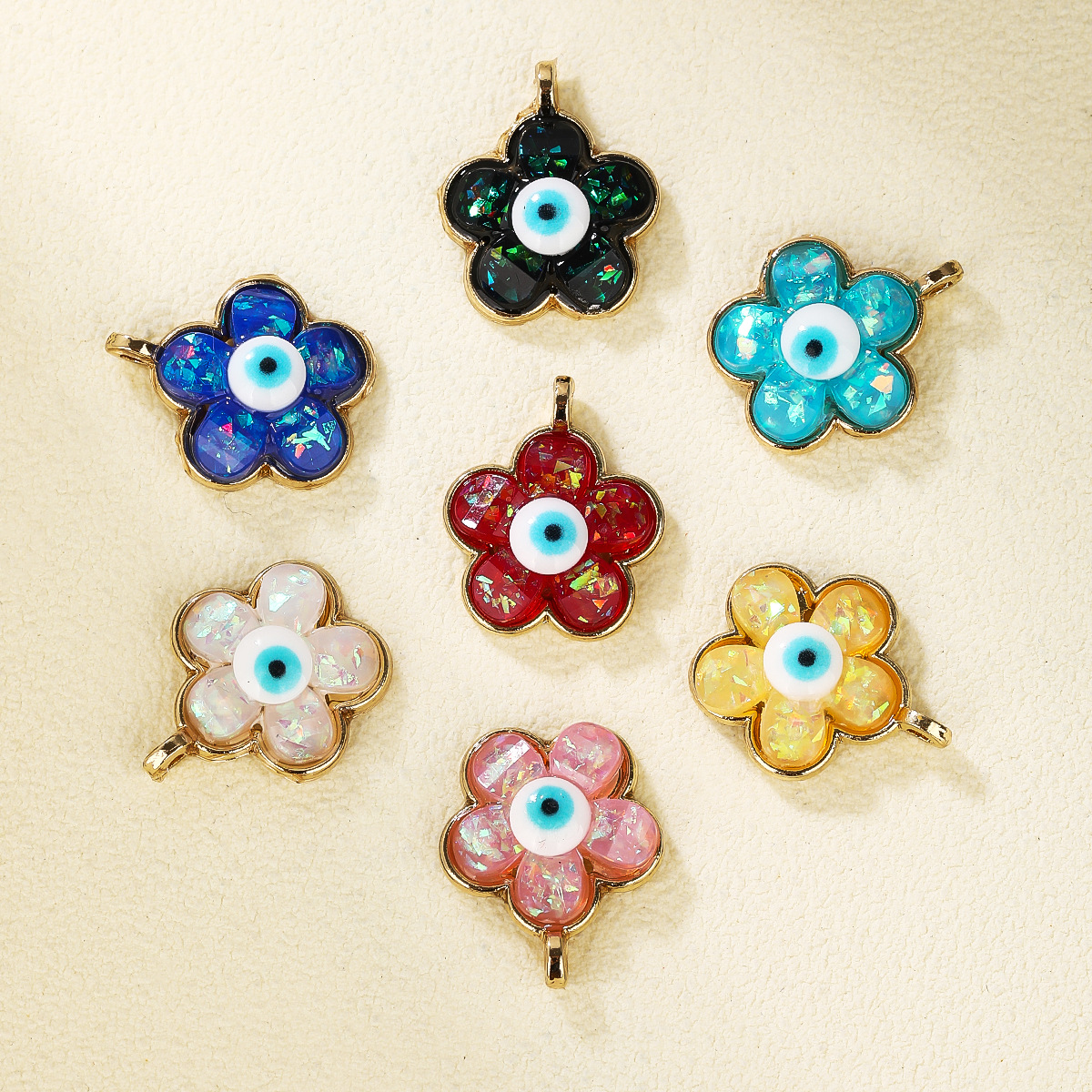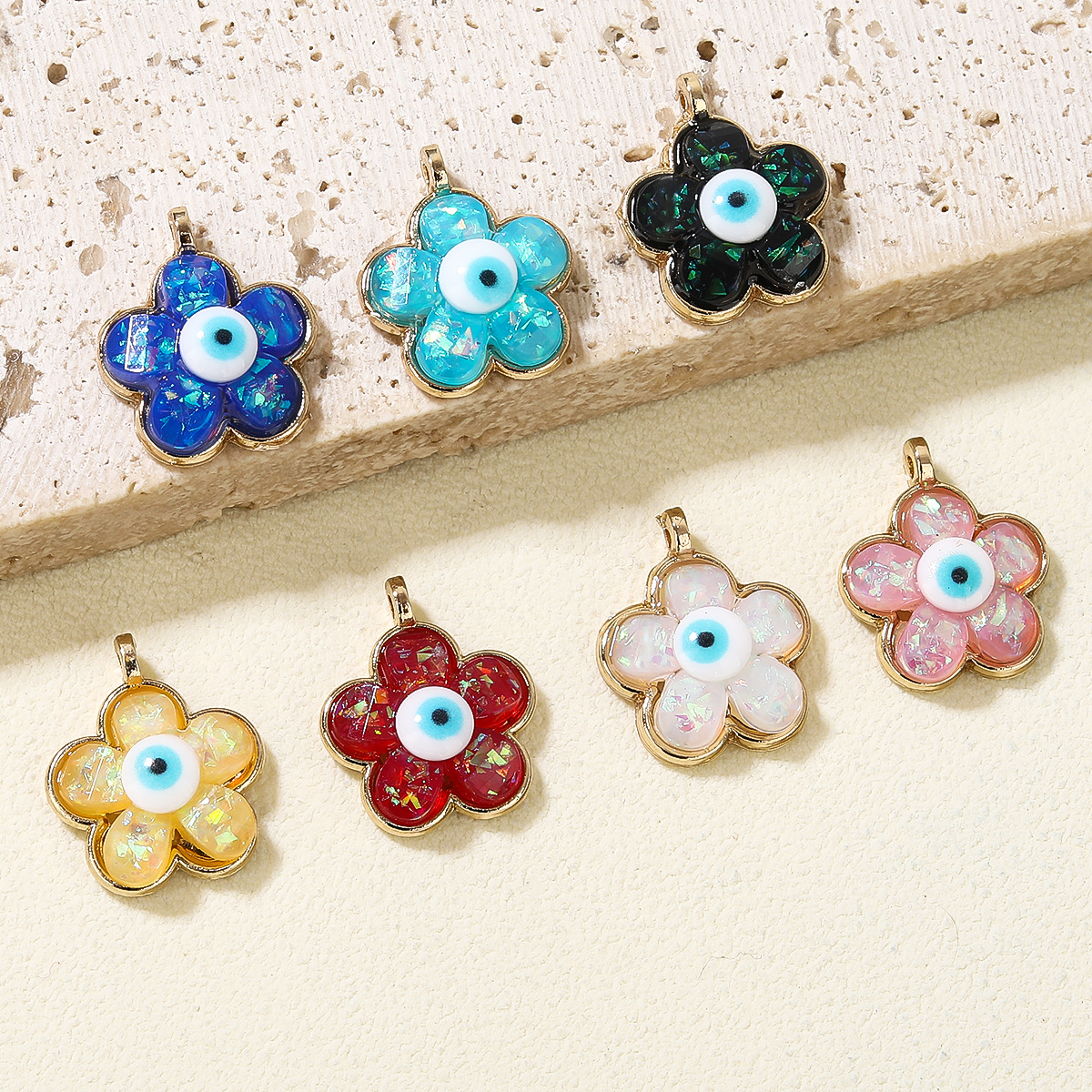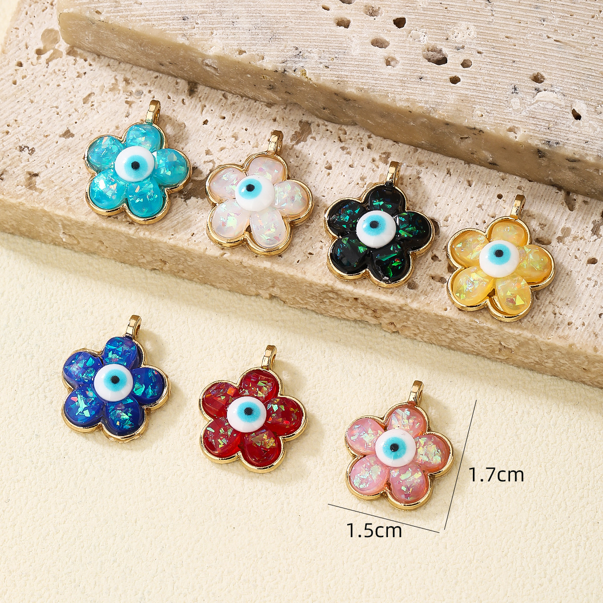 Bijoux pendentifs en Zinc alliage , alliage de zinc, avec résine, fleur, Placage de couleur d'or, DIY & motif de mauvais œil, plus de couleurs à choisir, 15x17mm, Vendu par PC