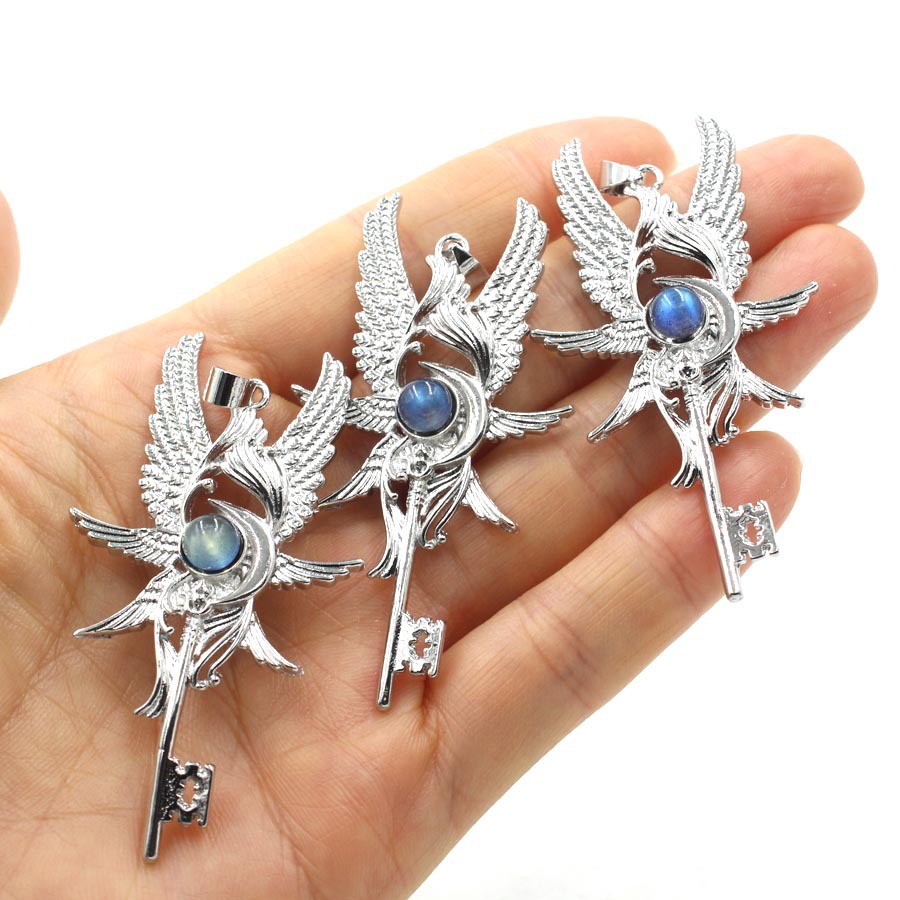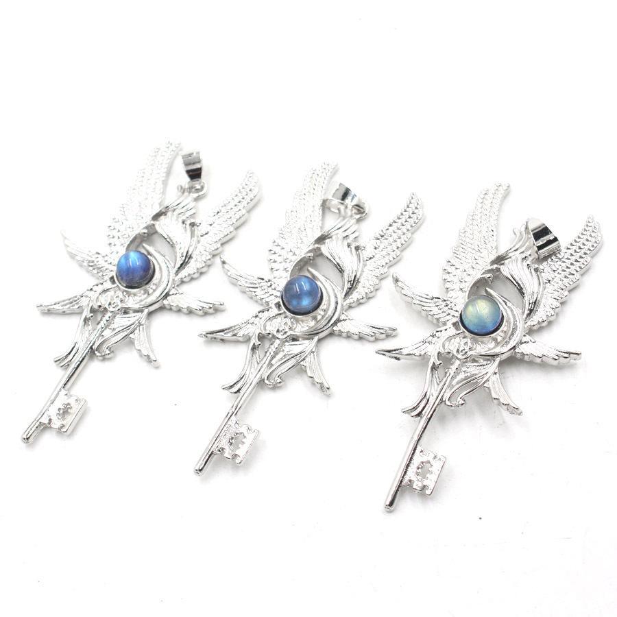 Bijoux pendentifs en Zinc alliage , alliage de zinc, avec Labradorite, Placage de couleur argentée, DIY, argent, 33x60mm, Vendu par PC