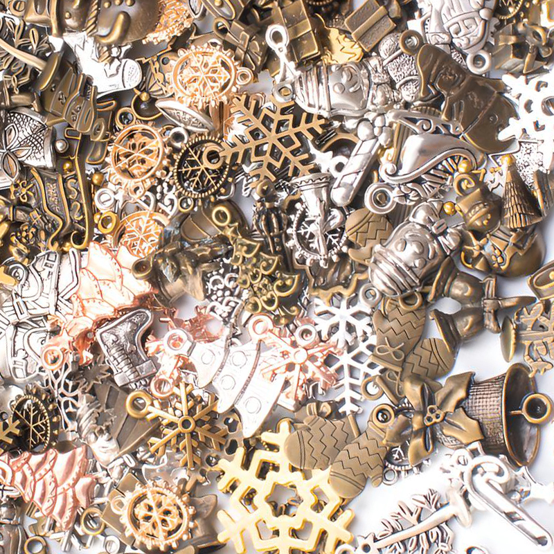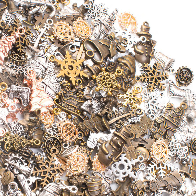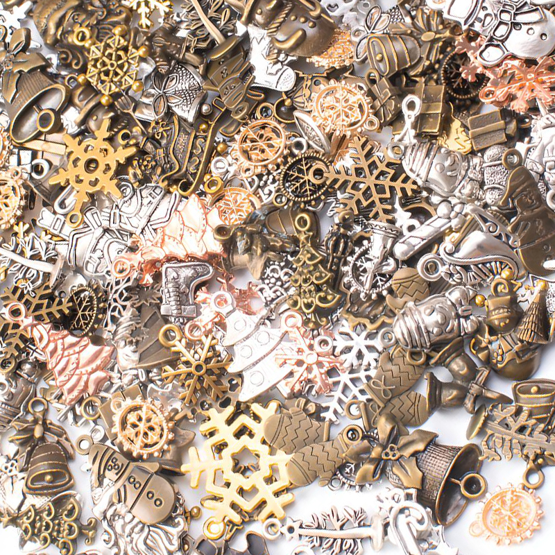 Bijoux pendentifs en Zinc alliage , alliage de zinc, Placage, Conception de Noël & modèle mixte & DIY, couleurs mélangées, pendant length 10-50mm, 100sol/sac, Vendu par sac