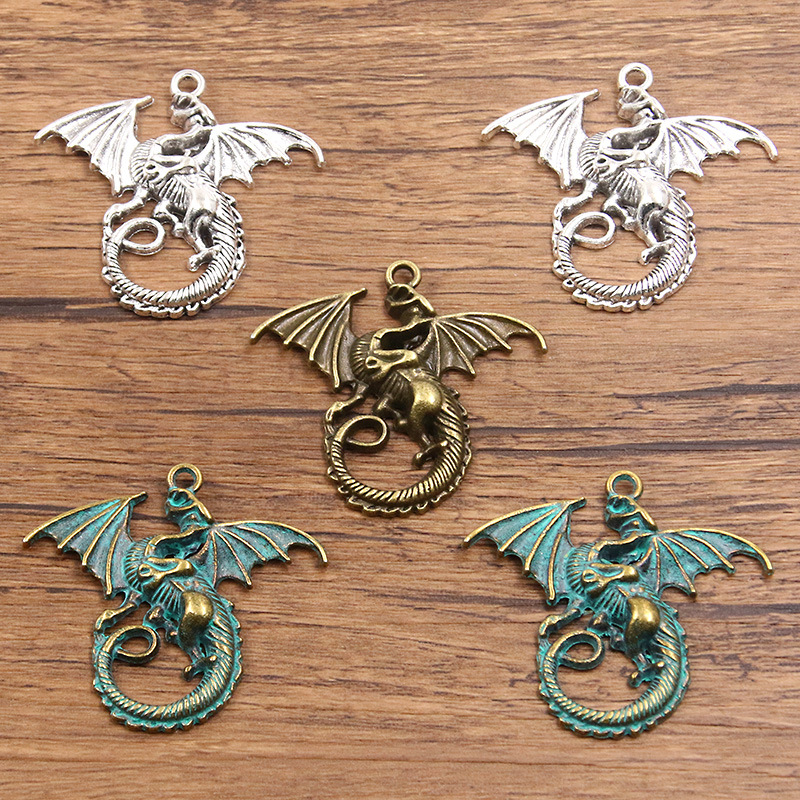 Bijoux pendentifs en Zinc alliage , alliage de zinc, dragon, Placage, DIY, plus de couleurs à choisir, 43x46mm, 100PC/sac, Vendu par sac