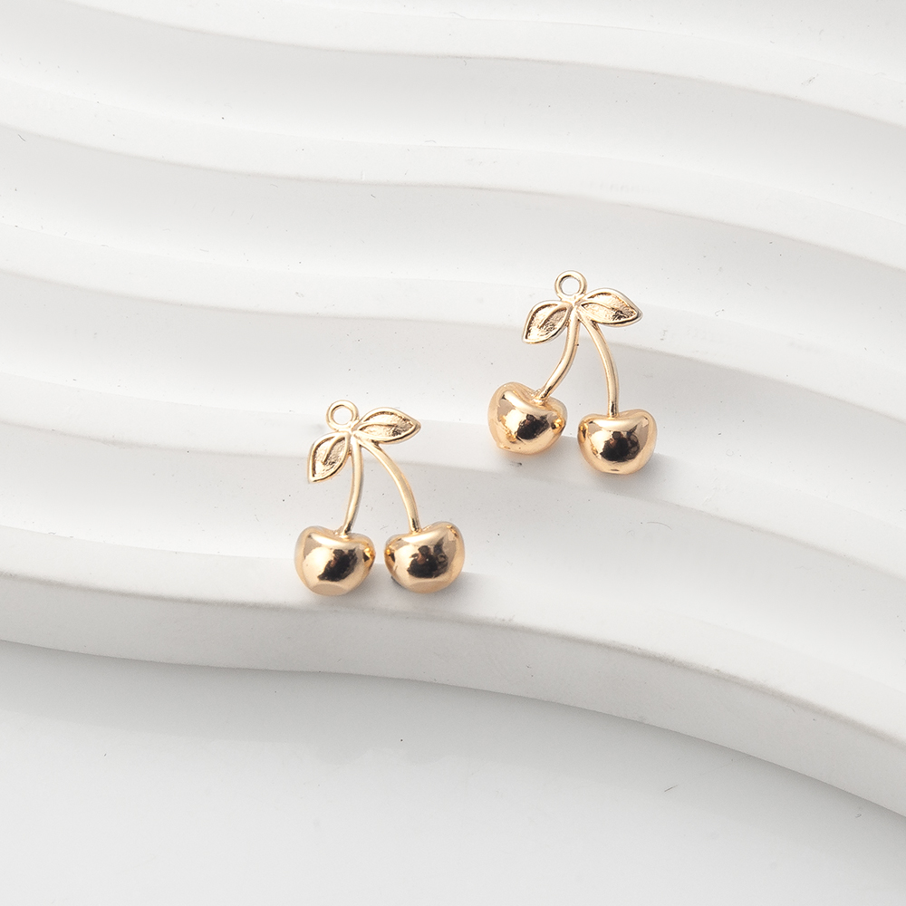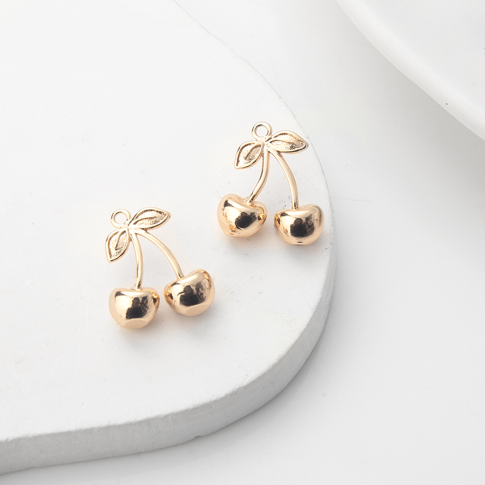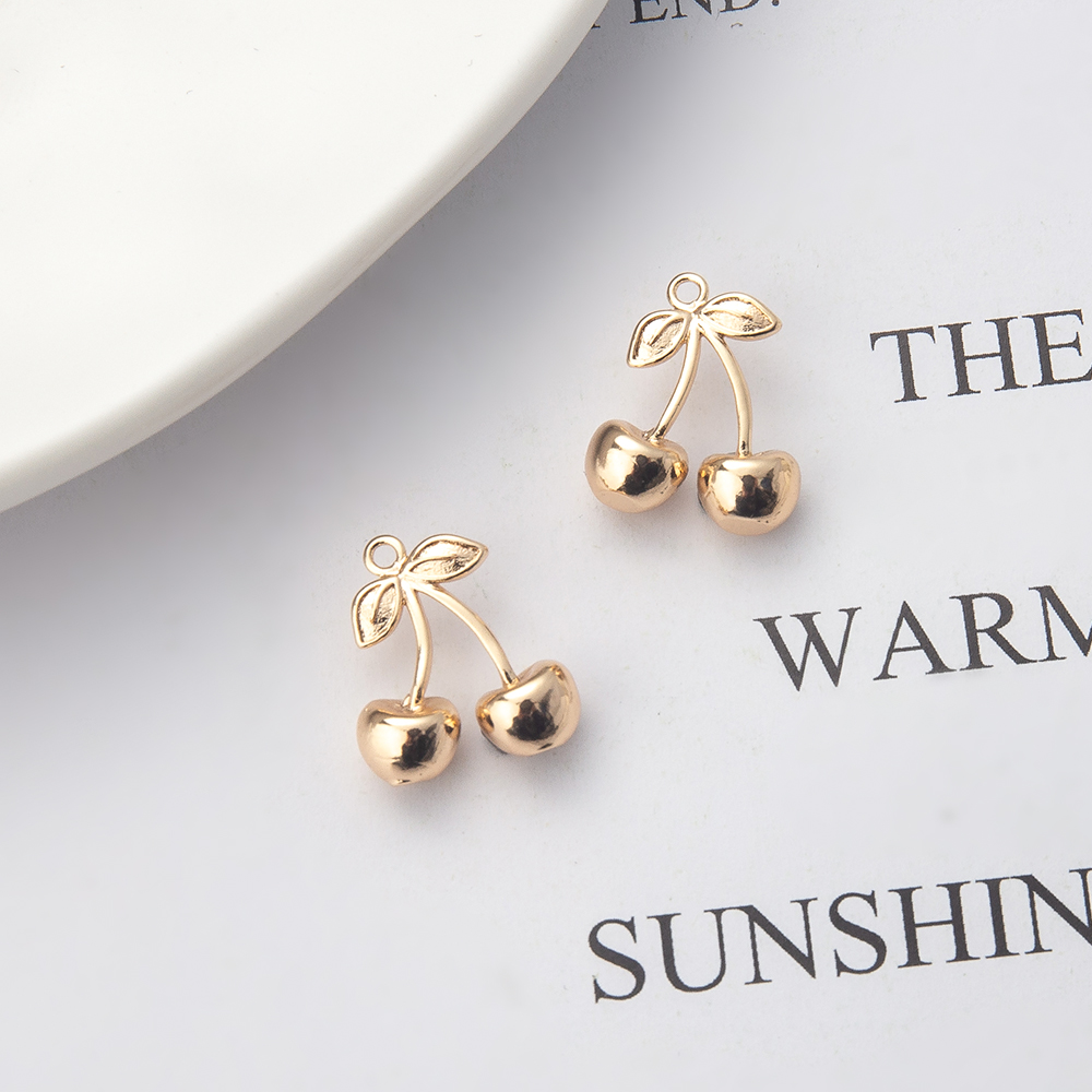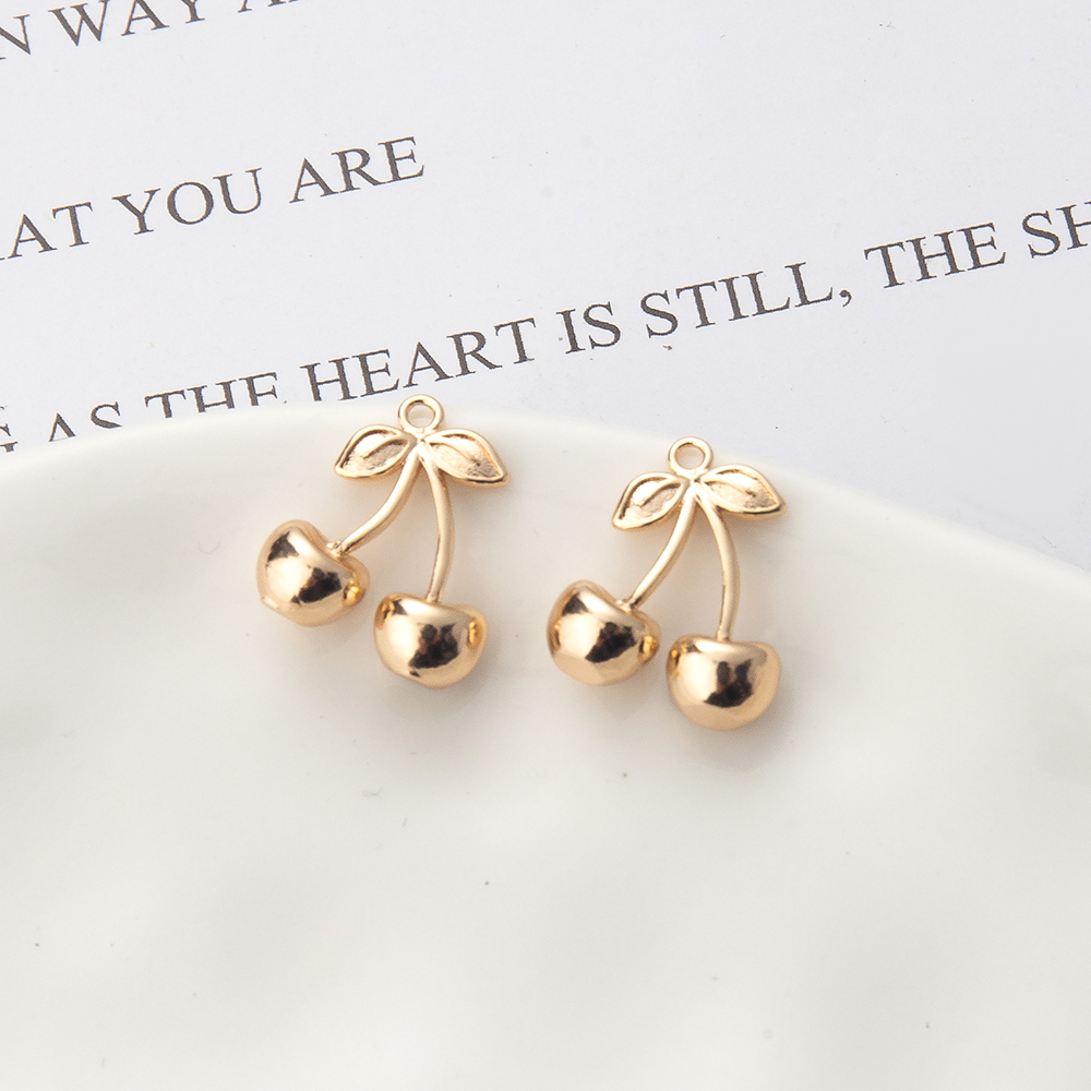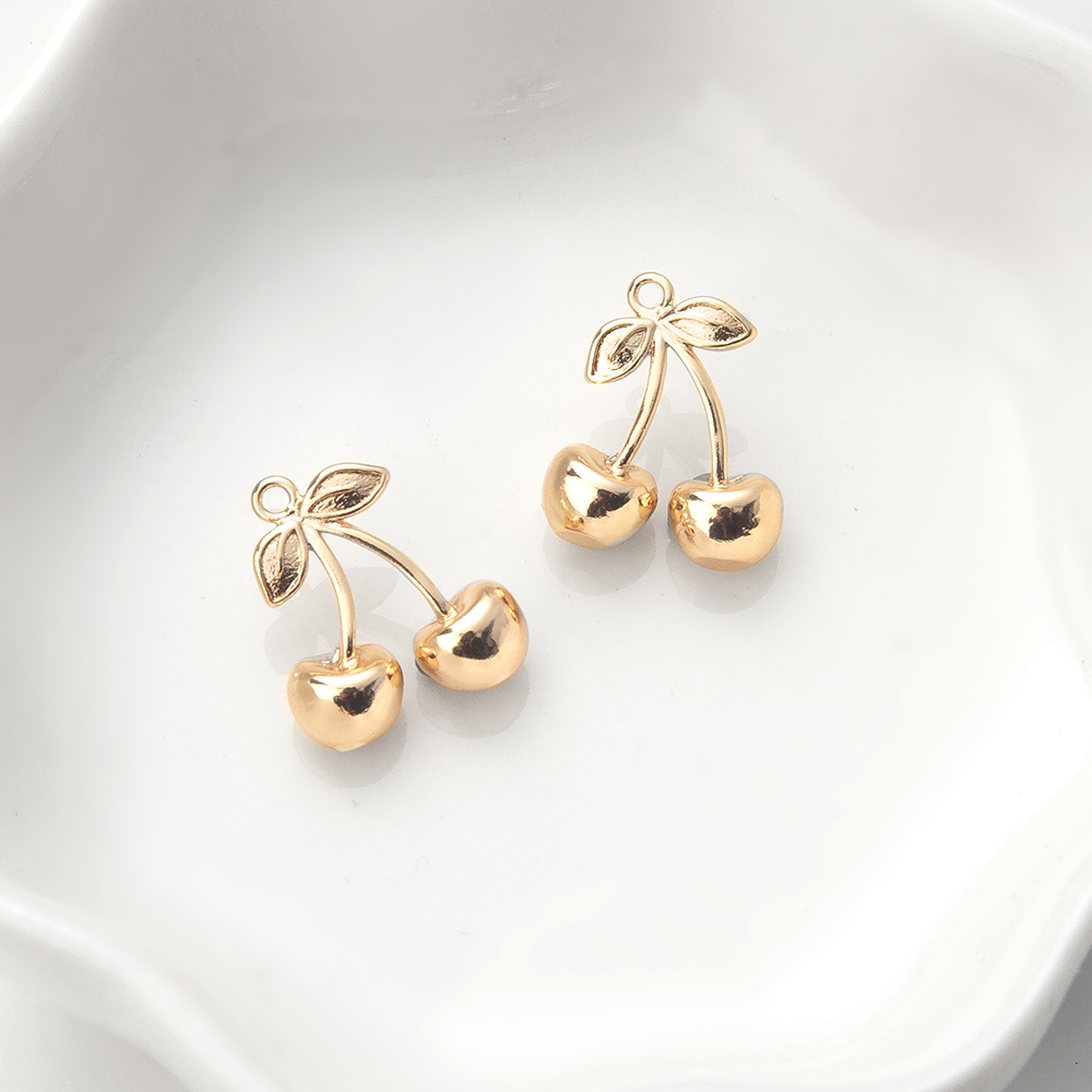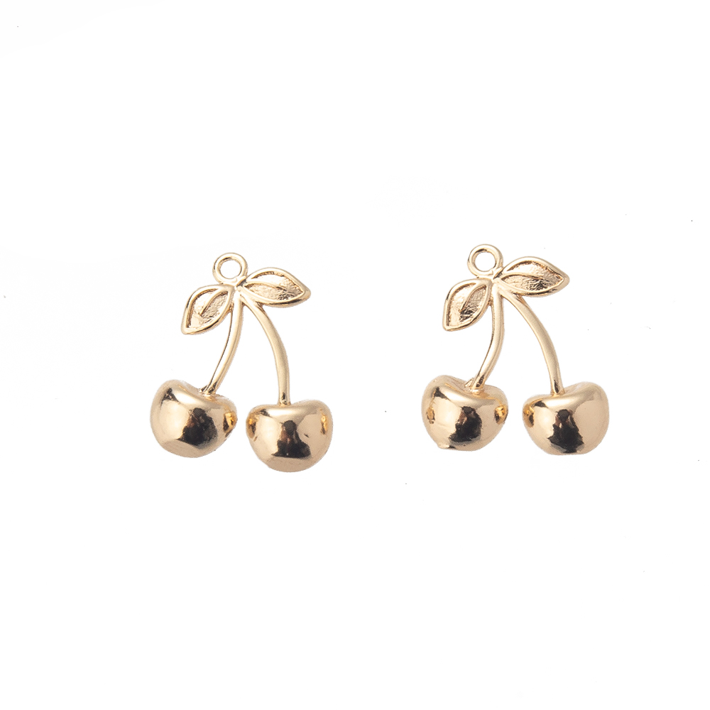 Bijoux pendentifs en laiton, cerise, Placage de couleur d'or, DIY, 12x5x14mm, Vendu par PC