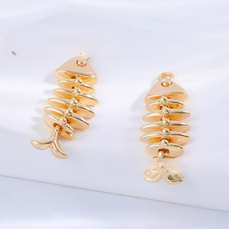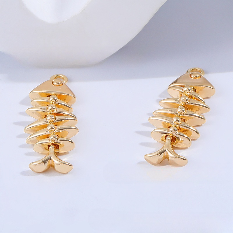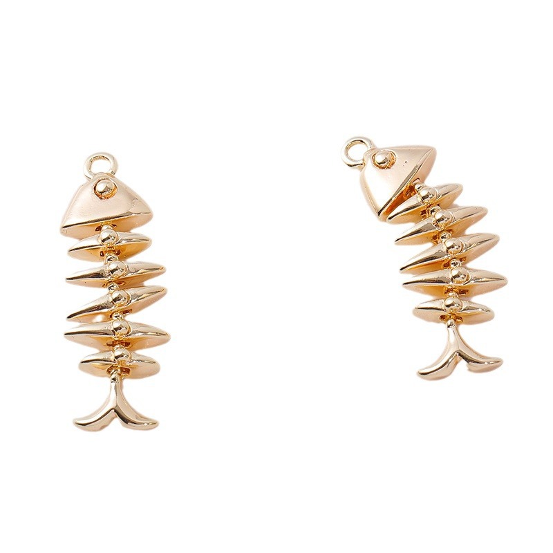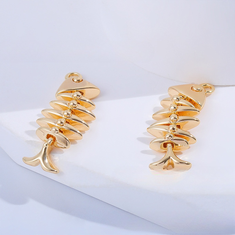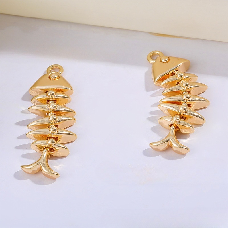 Bijoux pendentifs en laiton, Squelette de poisson, Placage de couleur d'or, DIY, Or, 29.4x10.4mm, 10PC/sac, Vendu par sac