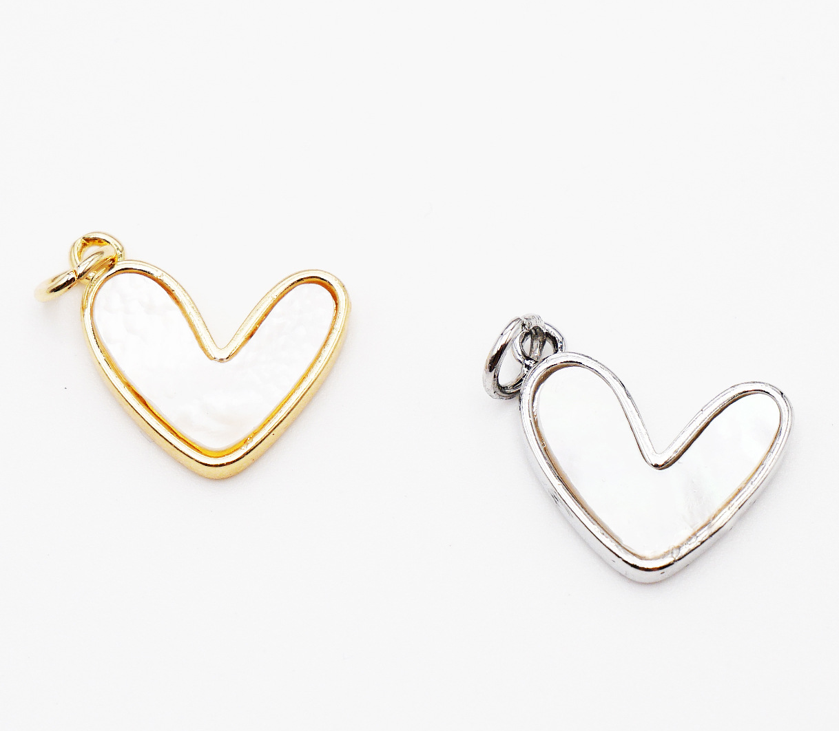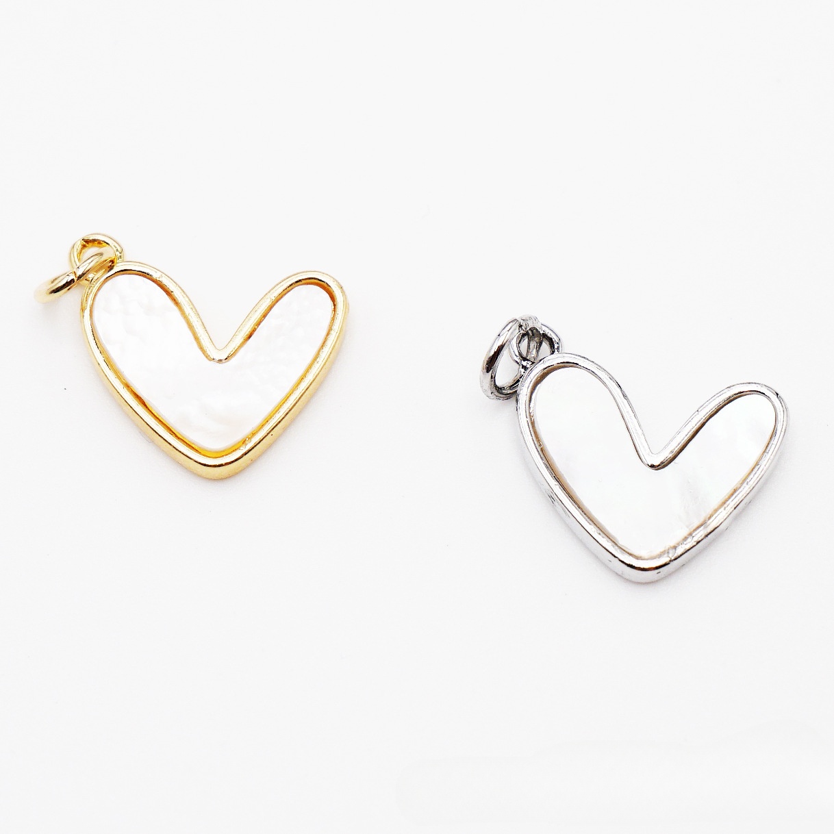 Bijoux pendentifs en laiton, avec coquille, coeur, Placage, DIY, plus de couleurs à choisir, 14x15mm, Vendu par PC