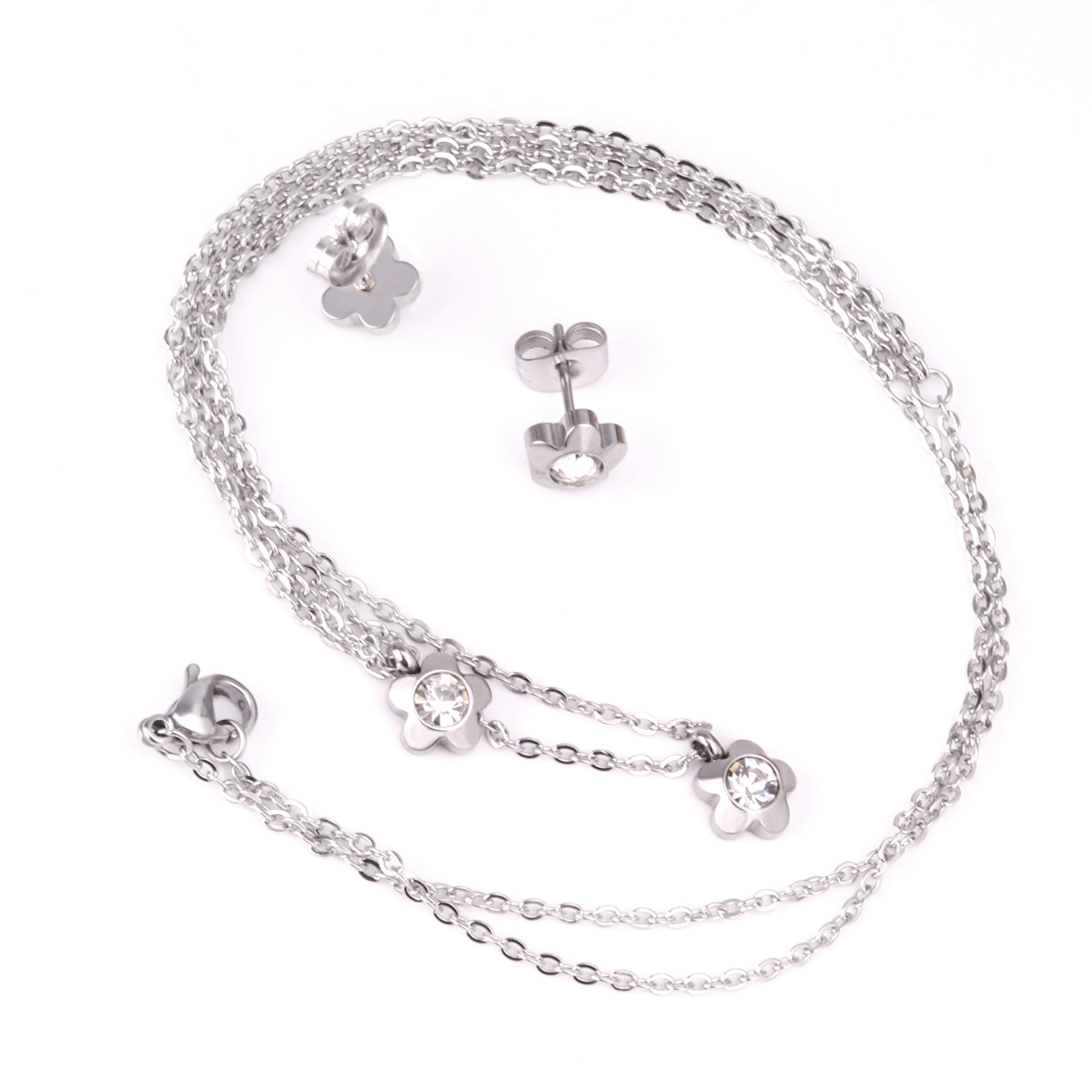 Bijoux strass en acier inoxydable Set, Acier inoxydable 304, Boucle d’oreille stud & collier, fleur, Placage, 2 pièces & pour femme & avec strass, plus de couleurs à choisir, Vendu par fixé