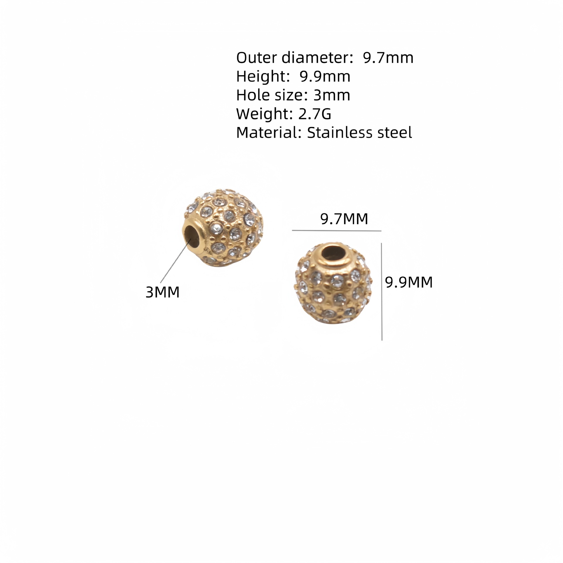 Billes en acier inoxydable, Acier inoxydable 304, Rond, Placage, DIY & avec strass, plus de couleurs à choisir, Vendu par PC
