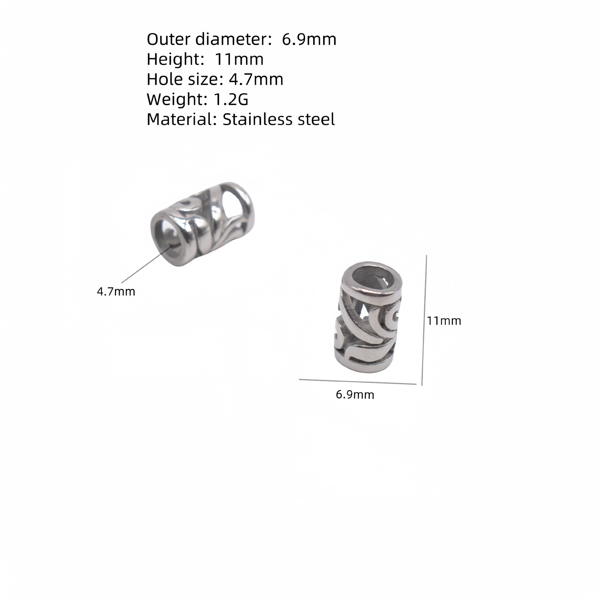 Billes en acier inoxydable, Acier inoxydable 304, Placage ionique sous vide, DIY, plus de couleurs à choisir, 6.9x11mm, Trou:Environ 4.7mm, Vendu par PC