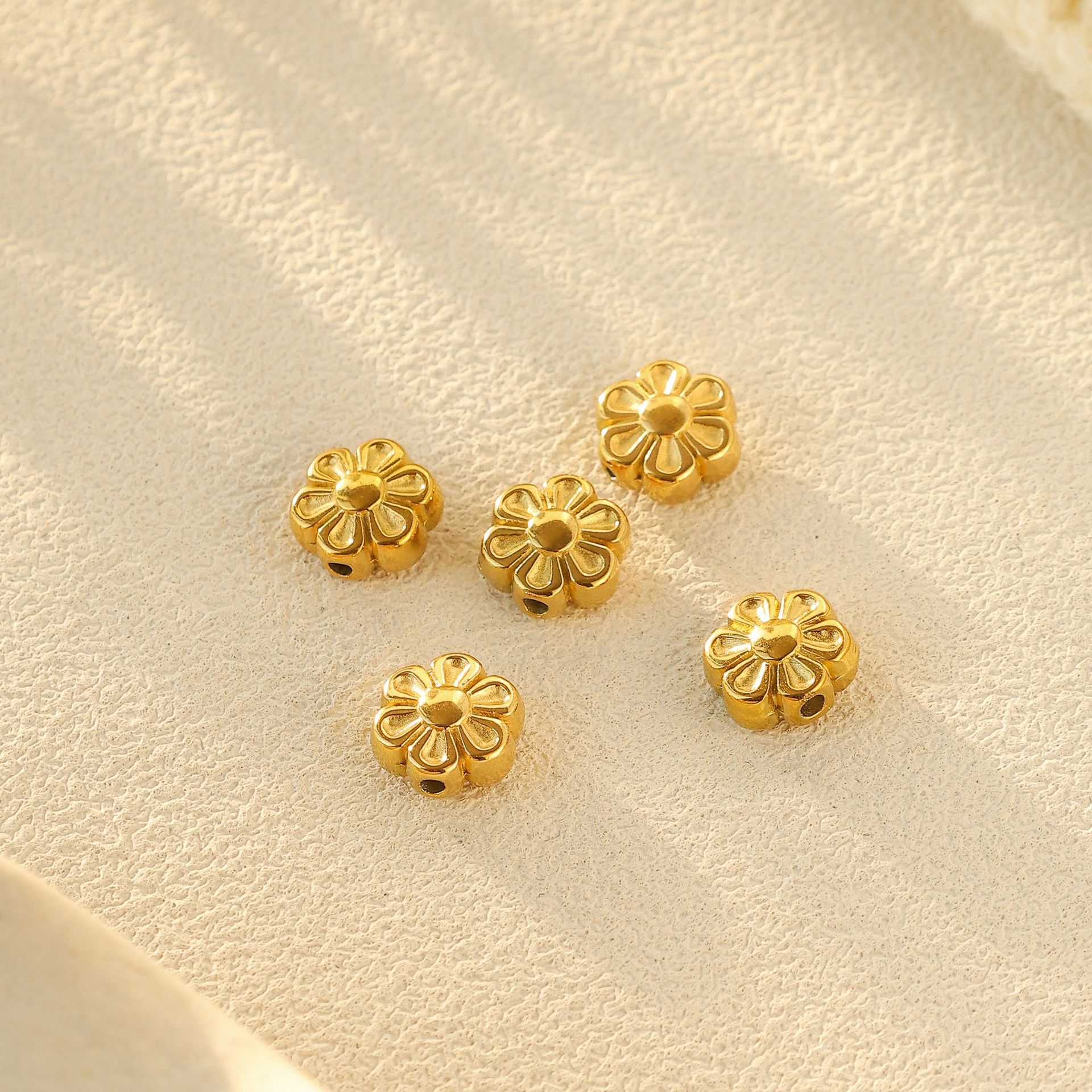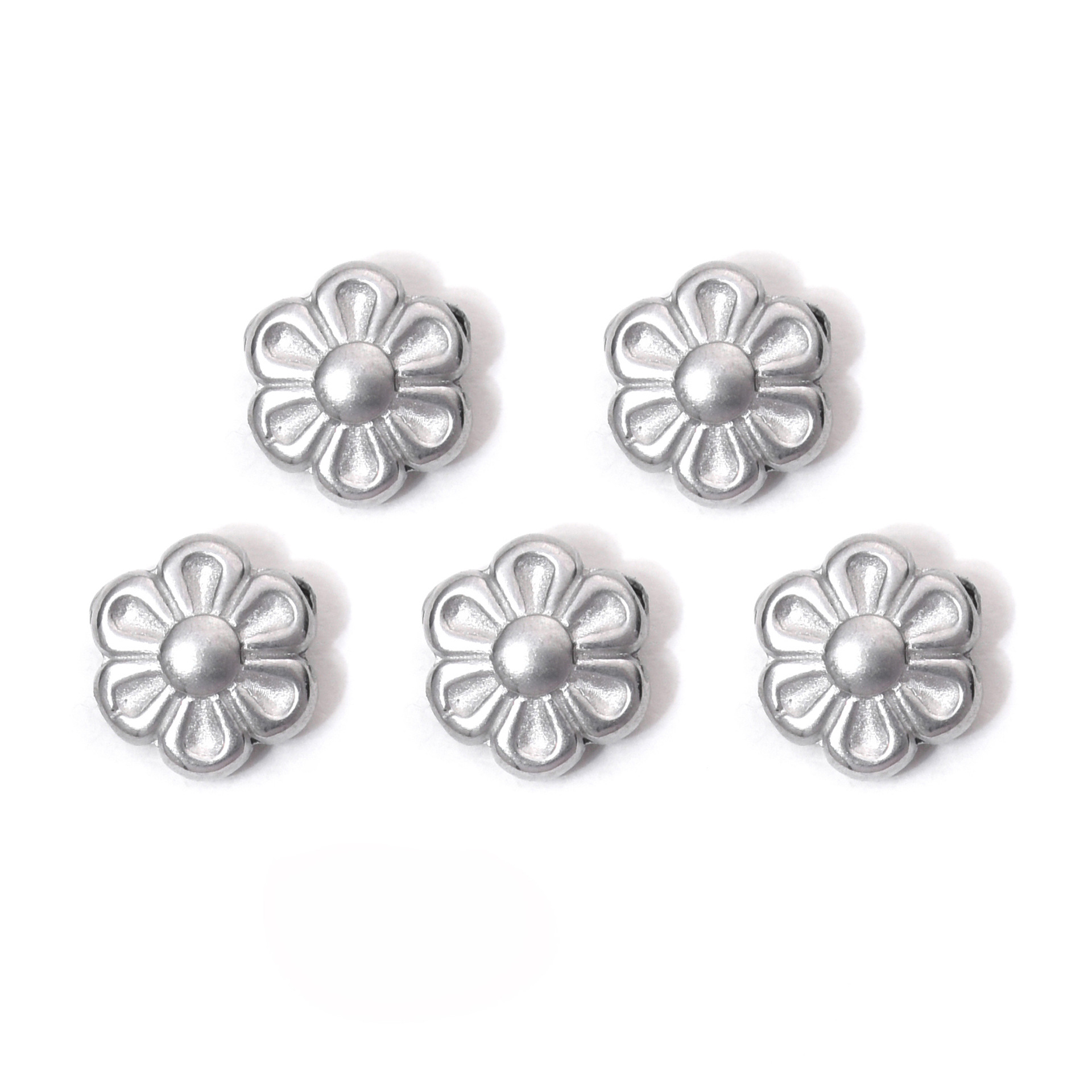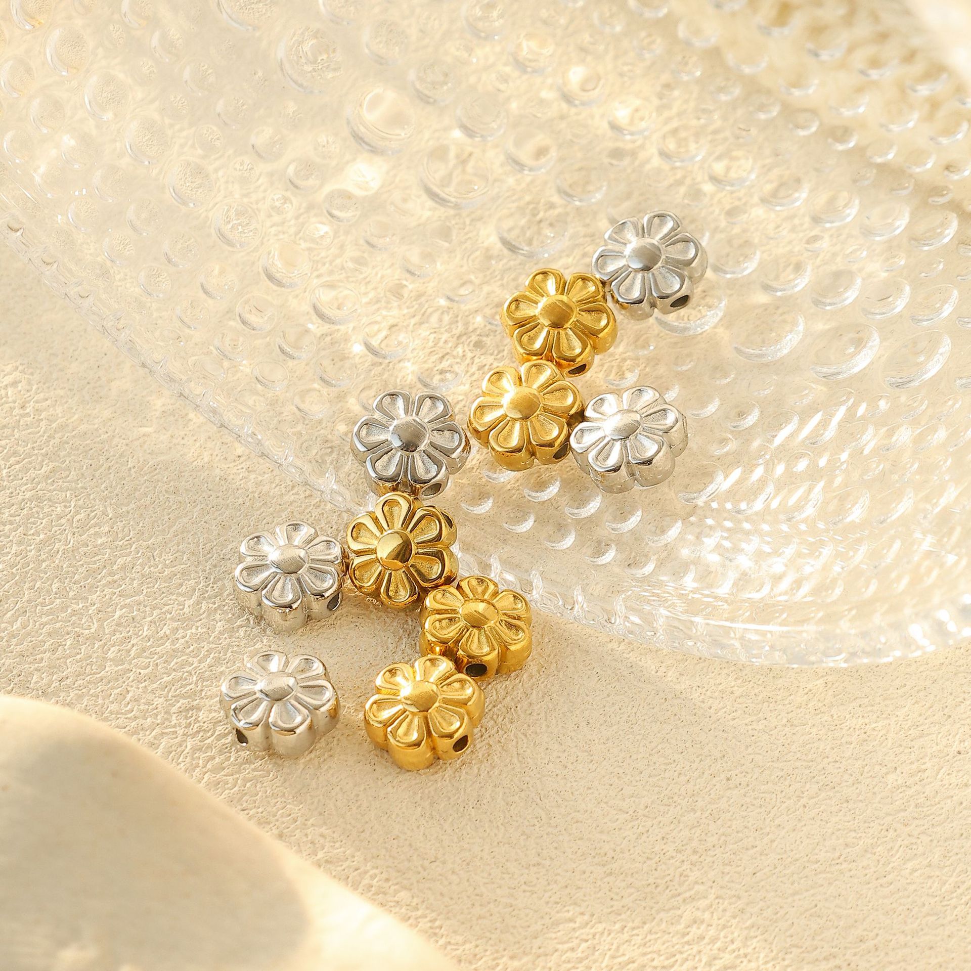 Billes en acier inoxydable, Acier inoxydable 304, fleur, Placage ionique sous vide, DIY, plus de couleurs à choisir, 8x8mm, 10PC/sac, Vendu par sac