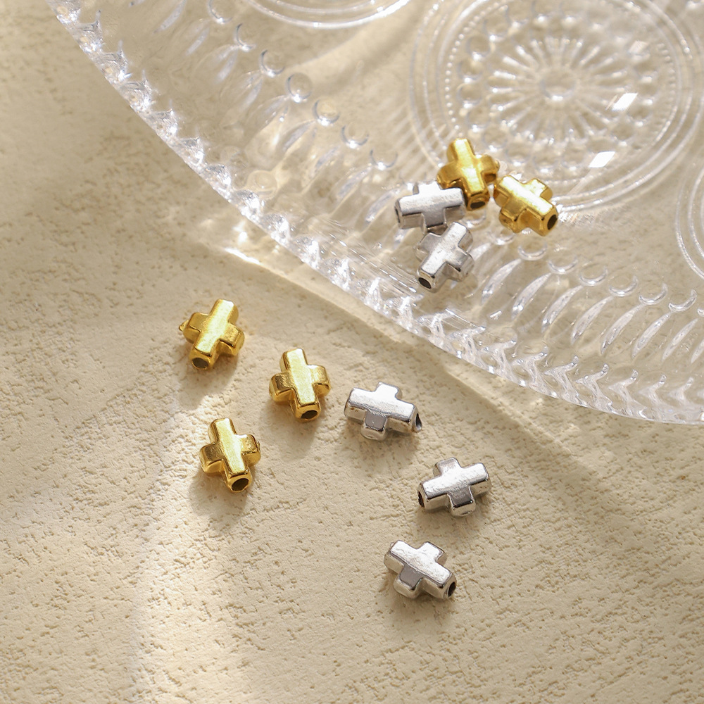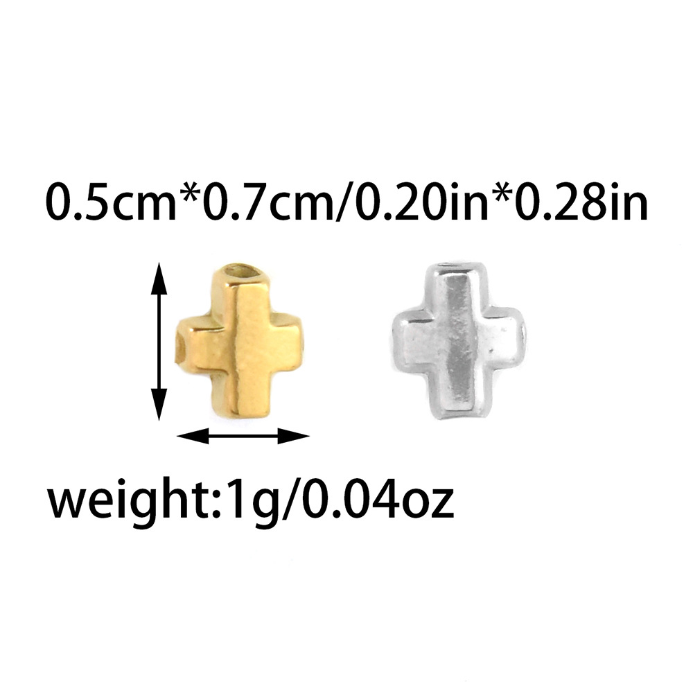 Billes en acier inoxydable, Acier inoxydable 304, croix, Placage ionique sous vide, DIY, plus de couleurs à choisir, 5x7mm, 10PC/sac, Vendu par sac
