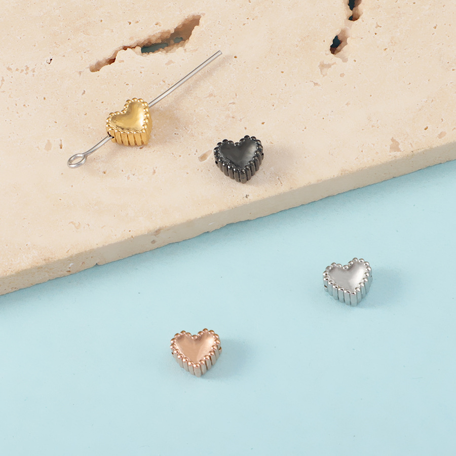 Billes en acier inoxydable, Acier inoxydable 304, coeur, Placage ionique sous vide, DIY, plus de couleurs à choisir, 8x8mm, Trou:Environ 1mm, Vendu par PC