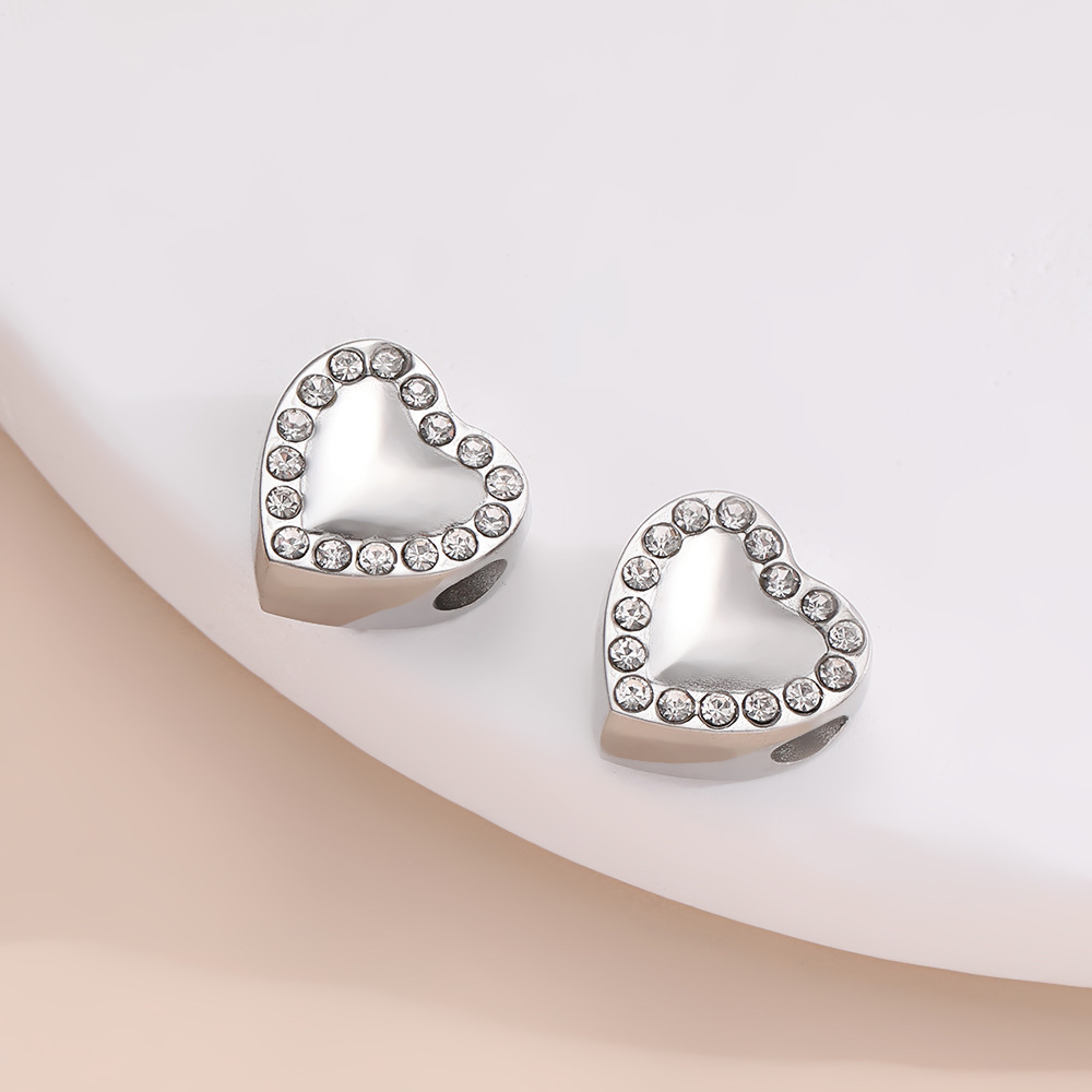 Billes en acier inoxydable, Acier inoxydable 304, coeur, Placage, DIY & avec strass, plus de couleurs à choisir, 11x11x5mm, 10PC/sac, Vendu par sac