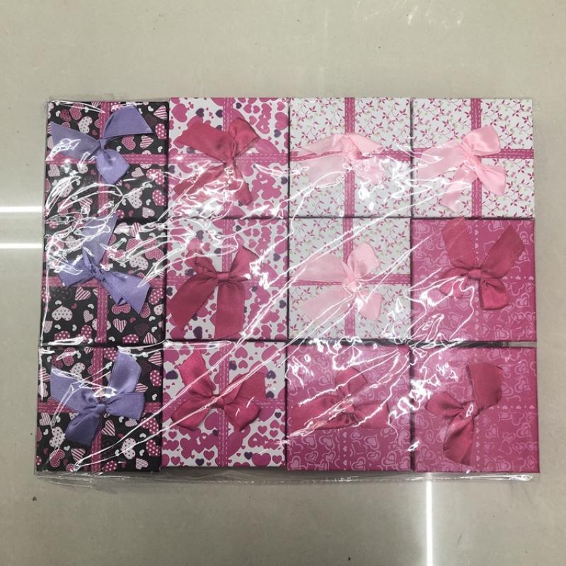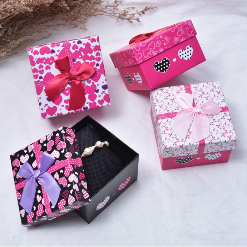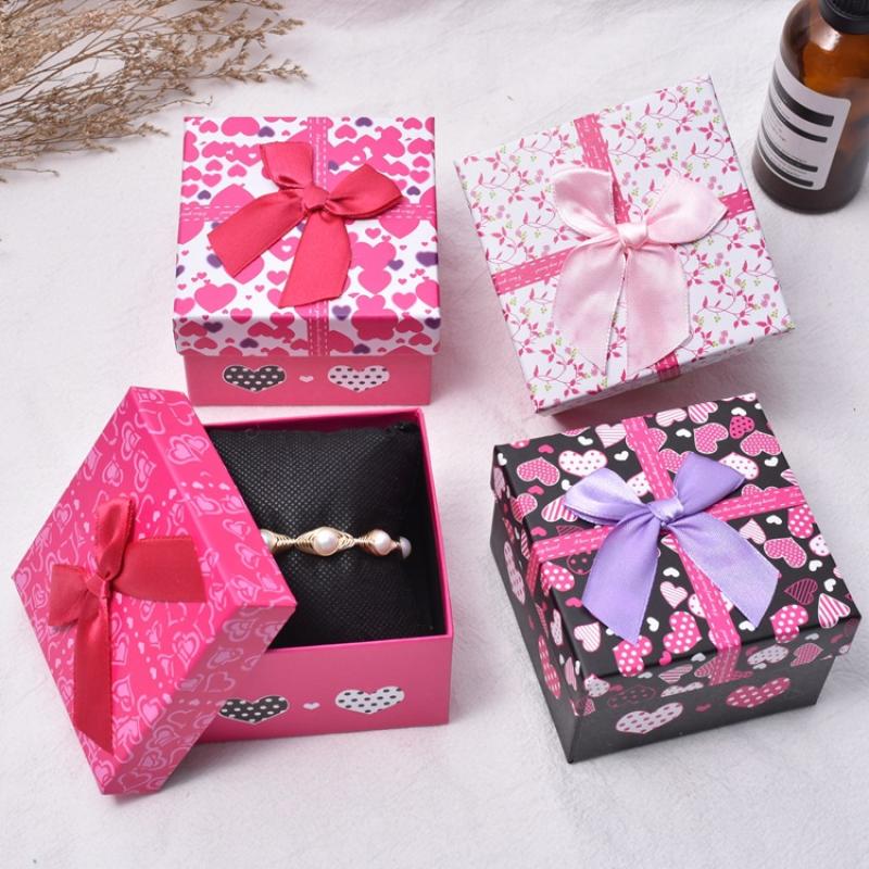 Boîte Cadeau de bijoux, papier, cadre, Impression, avec une décoration de noeud à boucles, couleurs mélangées, 90x90x57mm, 12PC/sac, Vendu par sac