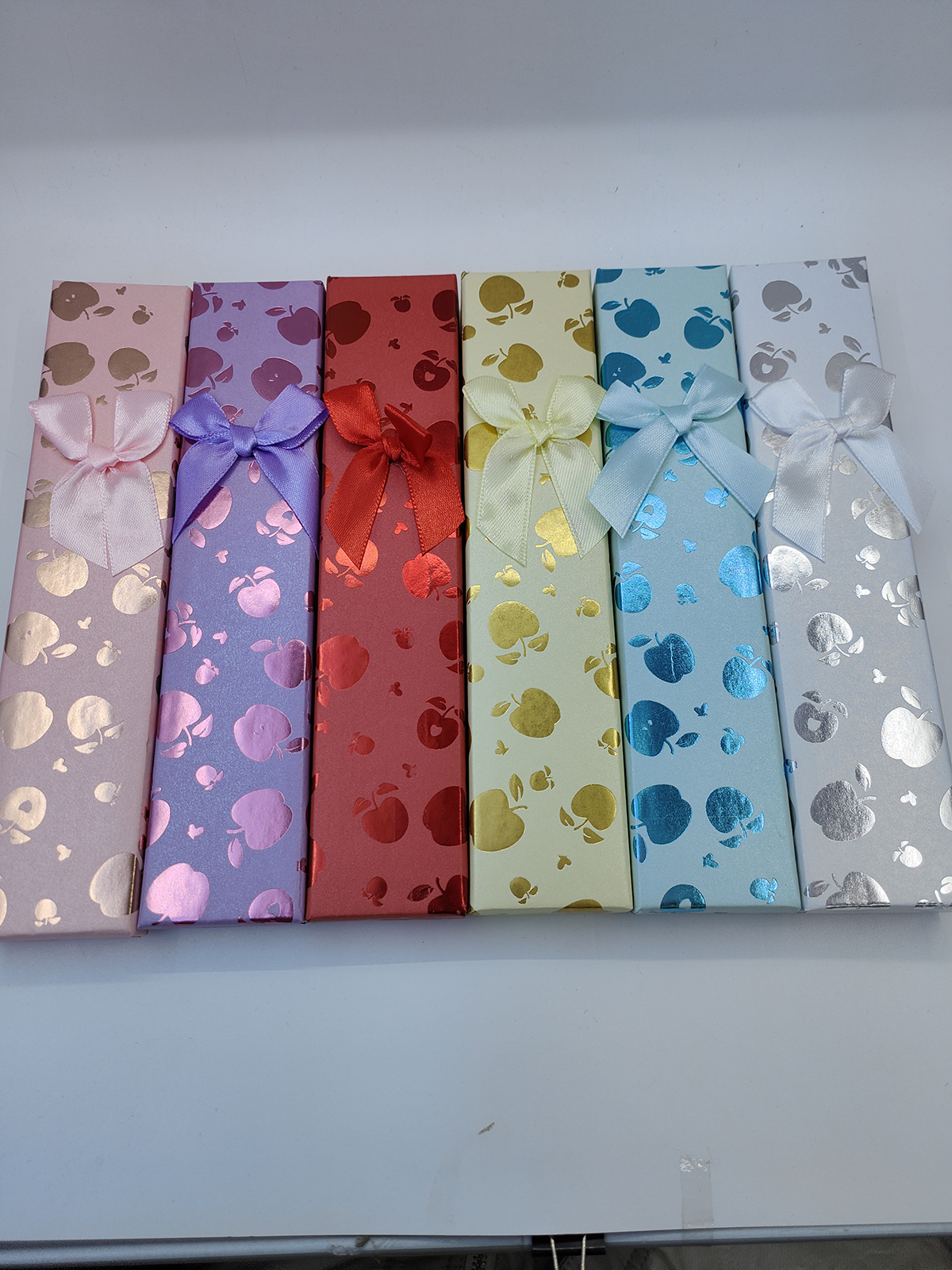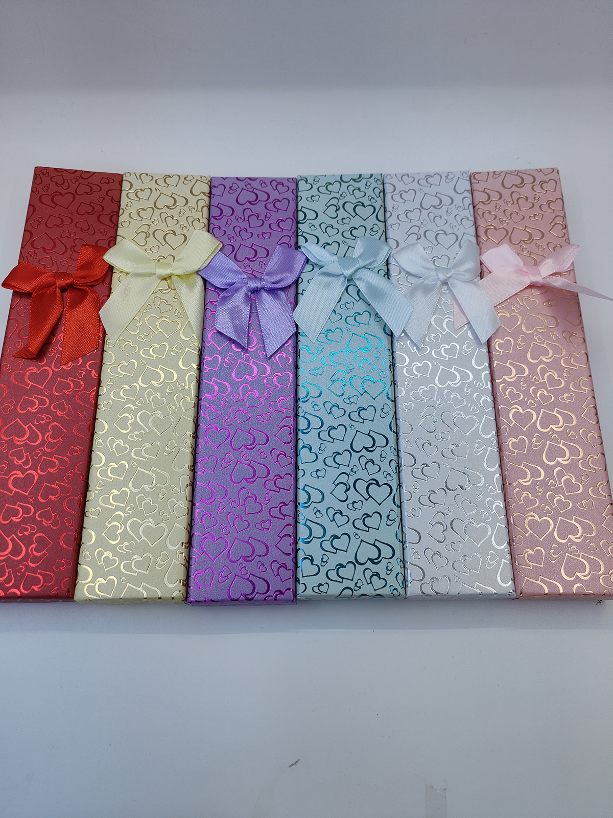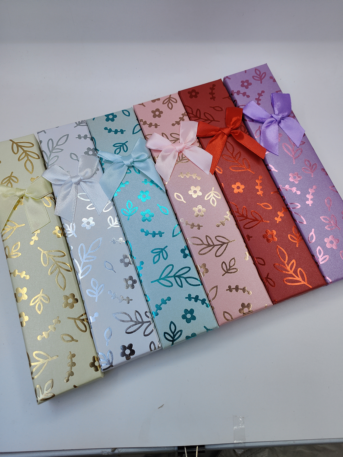 Boîte Cadeau de bijoux, papier, rectangle, impression, Anti-poussière & modèles différents pour le choix & avec une décoration de noeud à boucles, couleurs mélangées, 40x210x20mm, 1440PC/lot, Vendu par lot