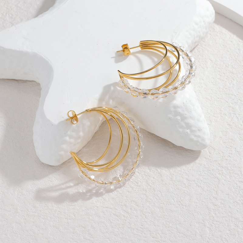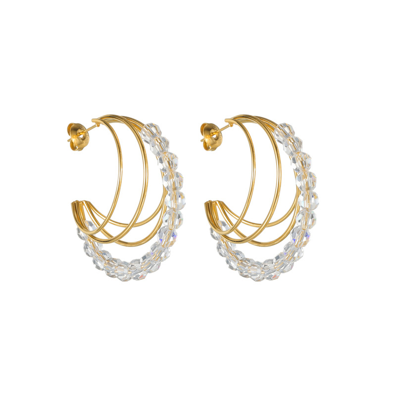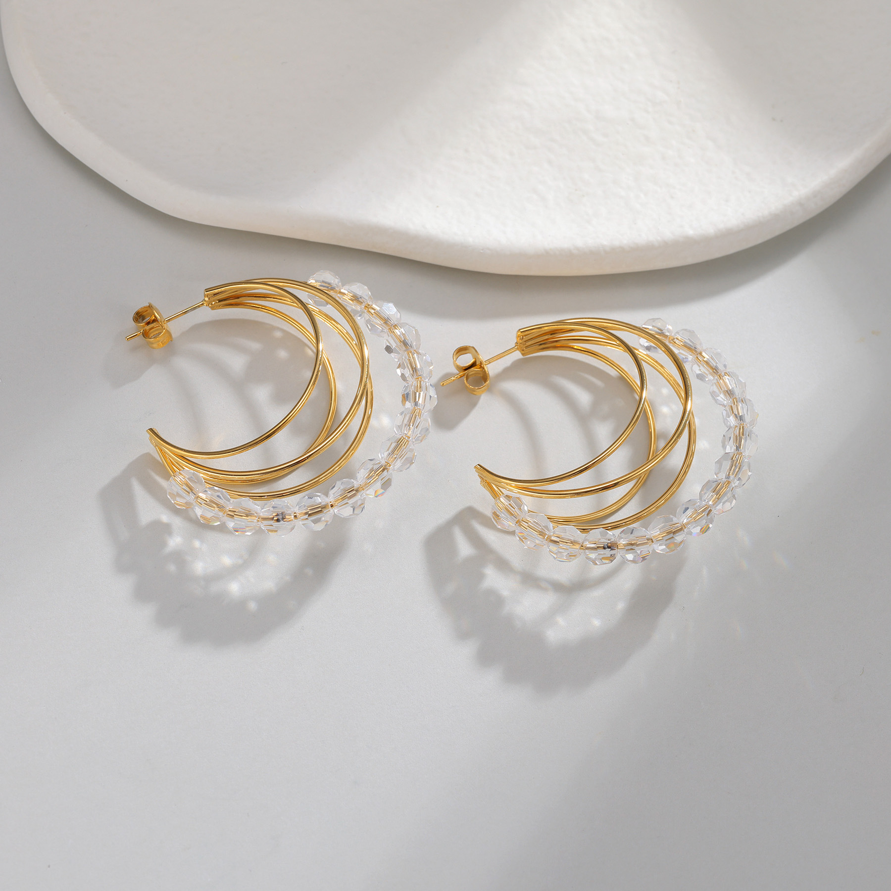 Boucle d'oreille de bijoux en cristal, Acier inoxydable 304, avec cristal, Plaqué or 18K, bijoux de mode & pour femme & creux, Vendu par paire