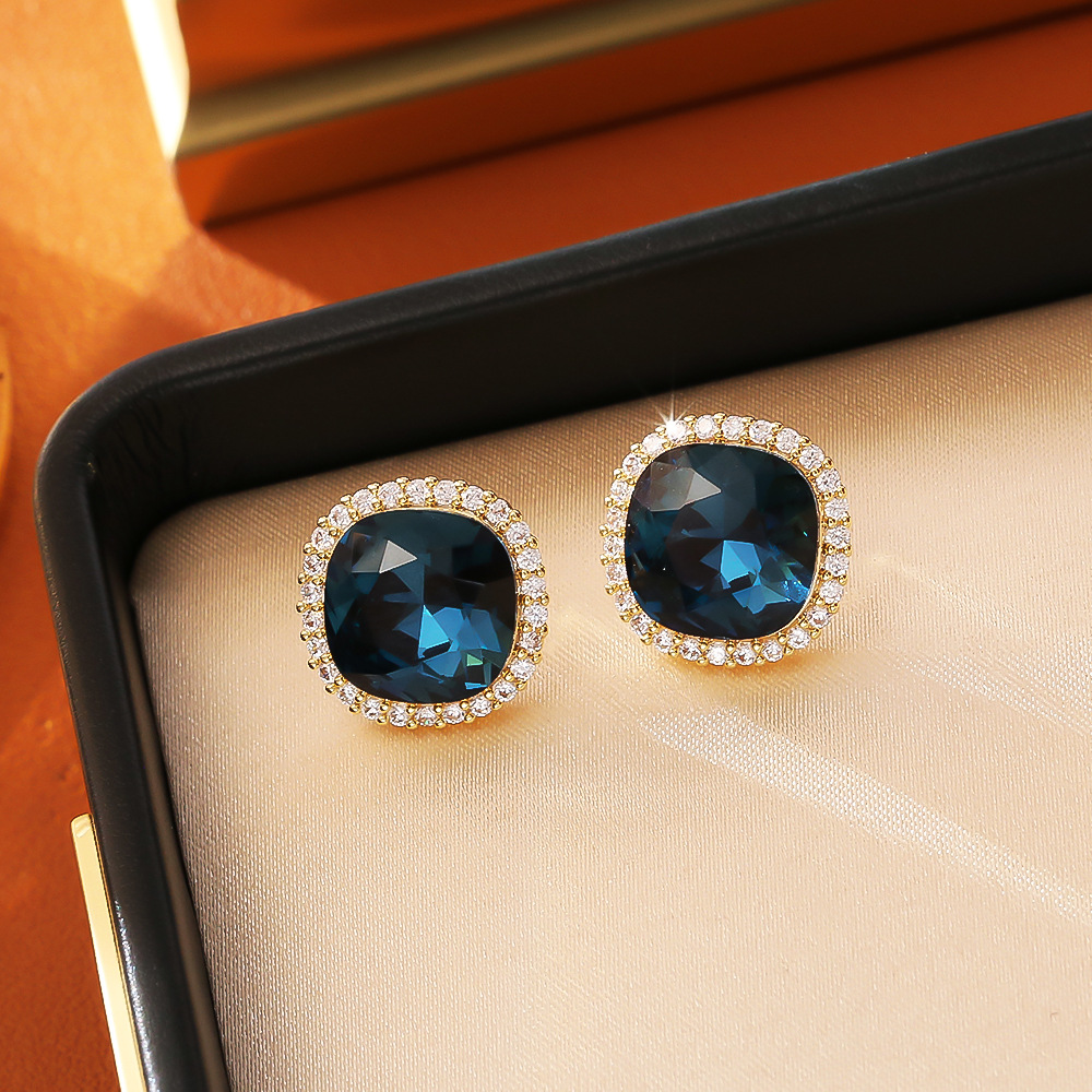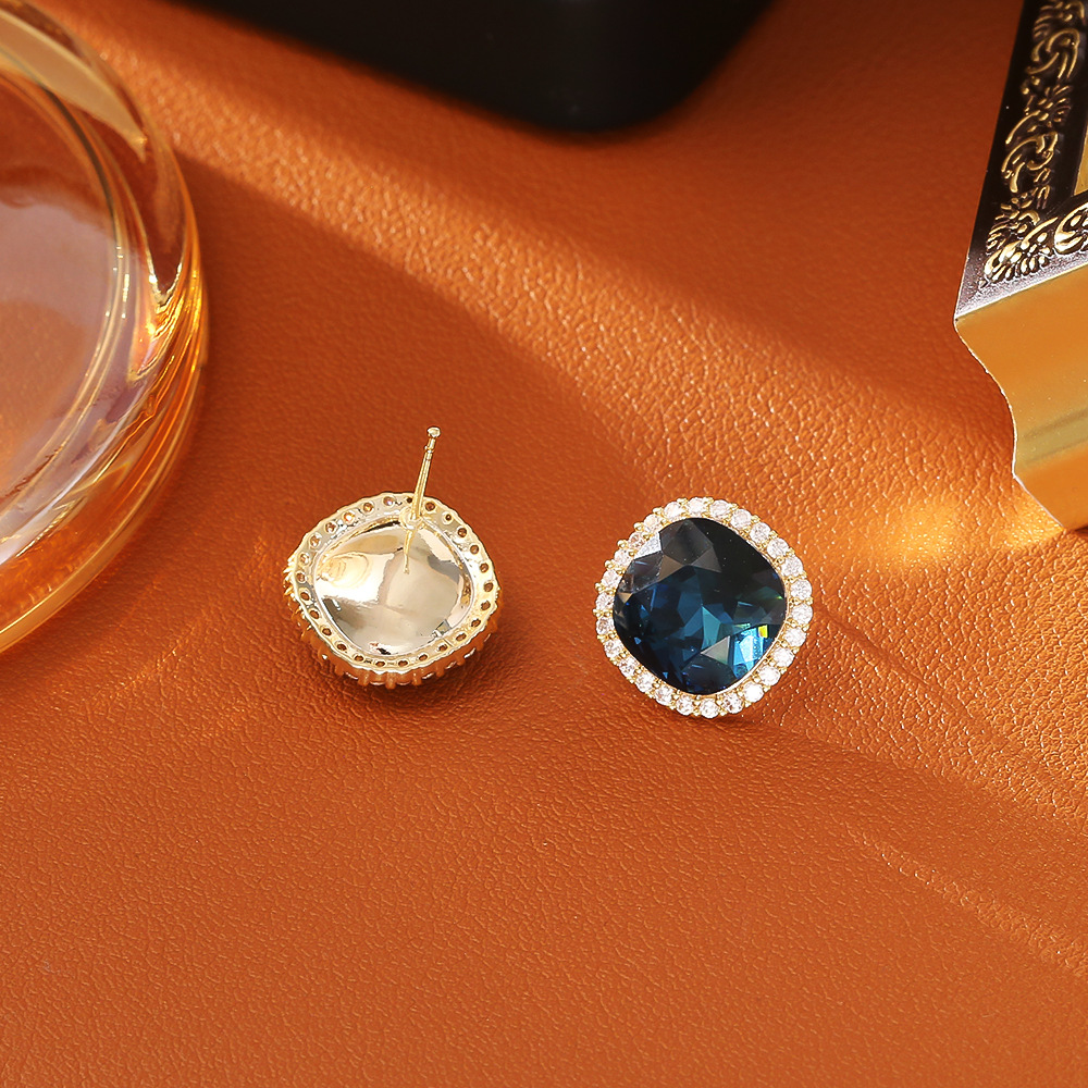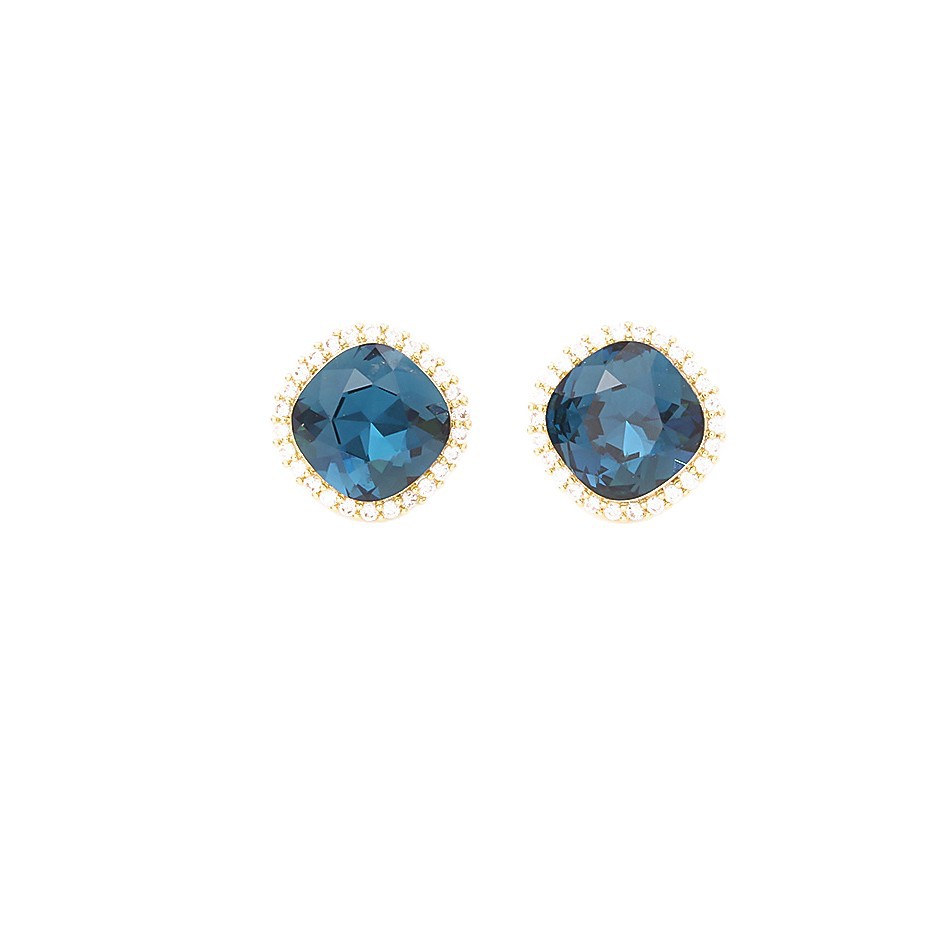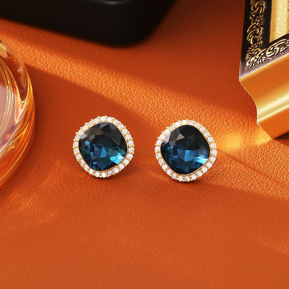 Boucle d'oreille de bijoux en cristal, laiton, avec cristal, Plaqué d'or, bijoux de mode & pavé de micro zircon & pour femme, bleu, Vendu par paire