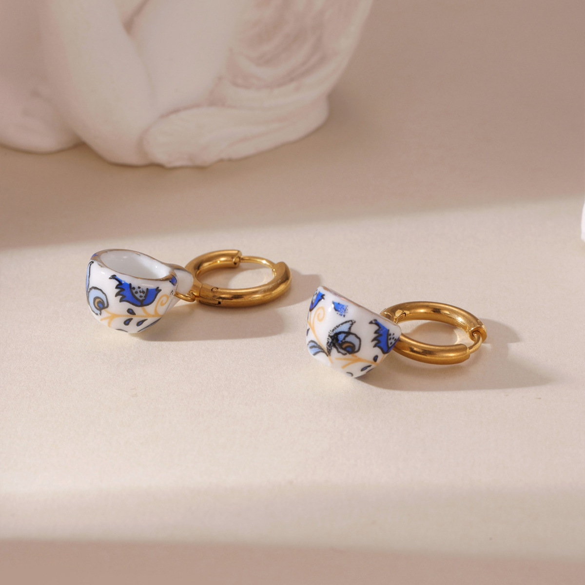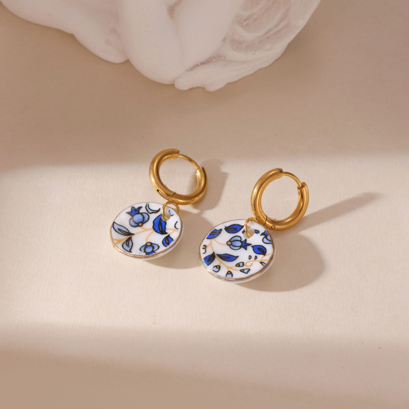 Boucle d'oreille de bijoux en porcelaine, Acier inoxydable 304, avec porcelaine, Plaqué d'or 18K, styles différents pour le choix & modèles différents pour le choix & pour femme, Vendu par paire