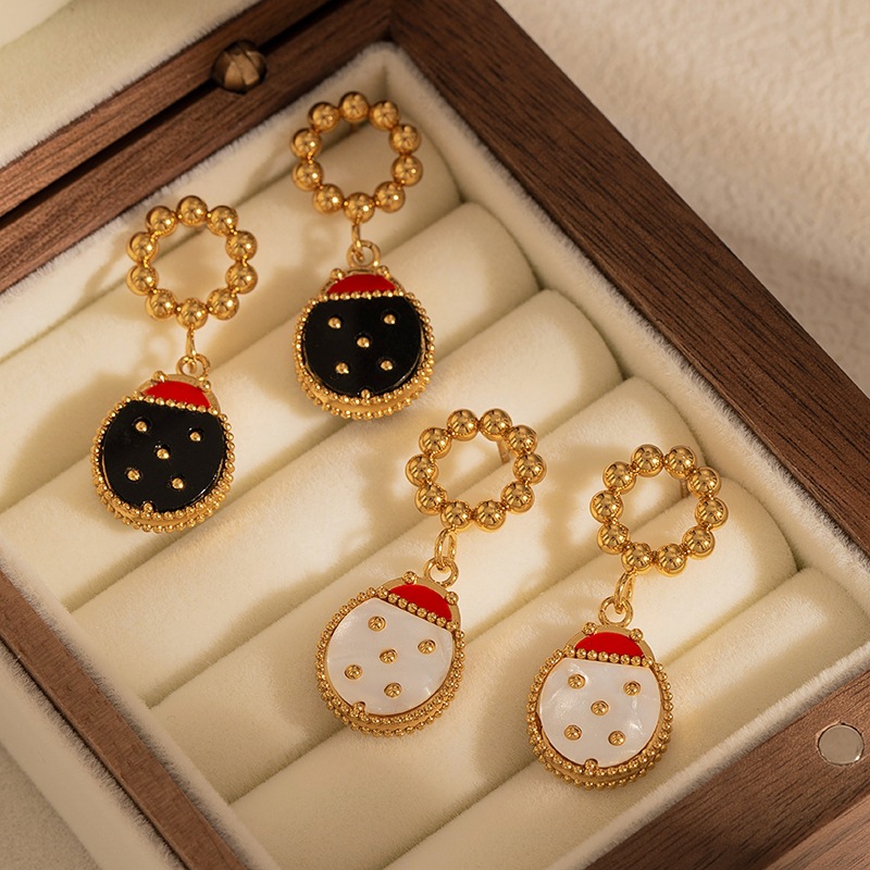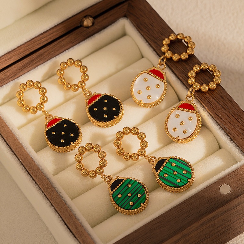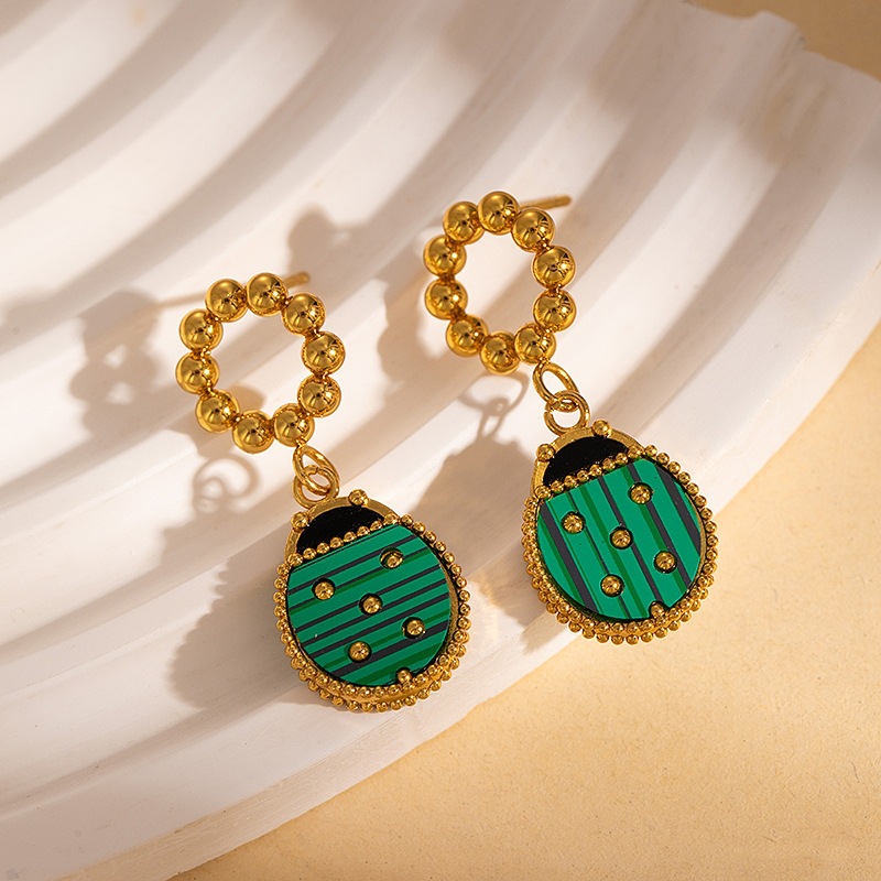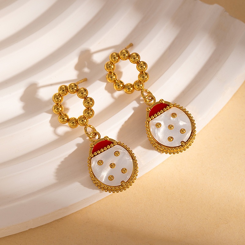 Boucle d'oreille de goutte acrylique, Acier inoxydable 304, avec Acrylique, coccinelle, Plaqué or 18K, bijoux de mode & pour femme & creux, plus de couleurs à choisir, Vendu par paire