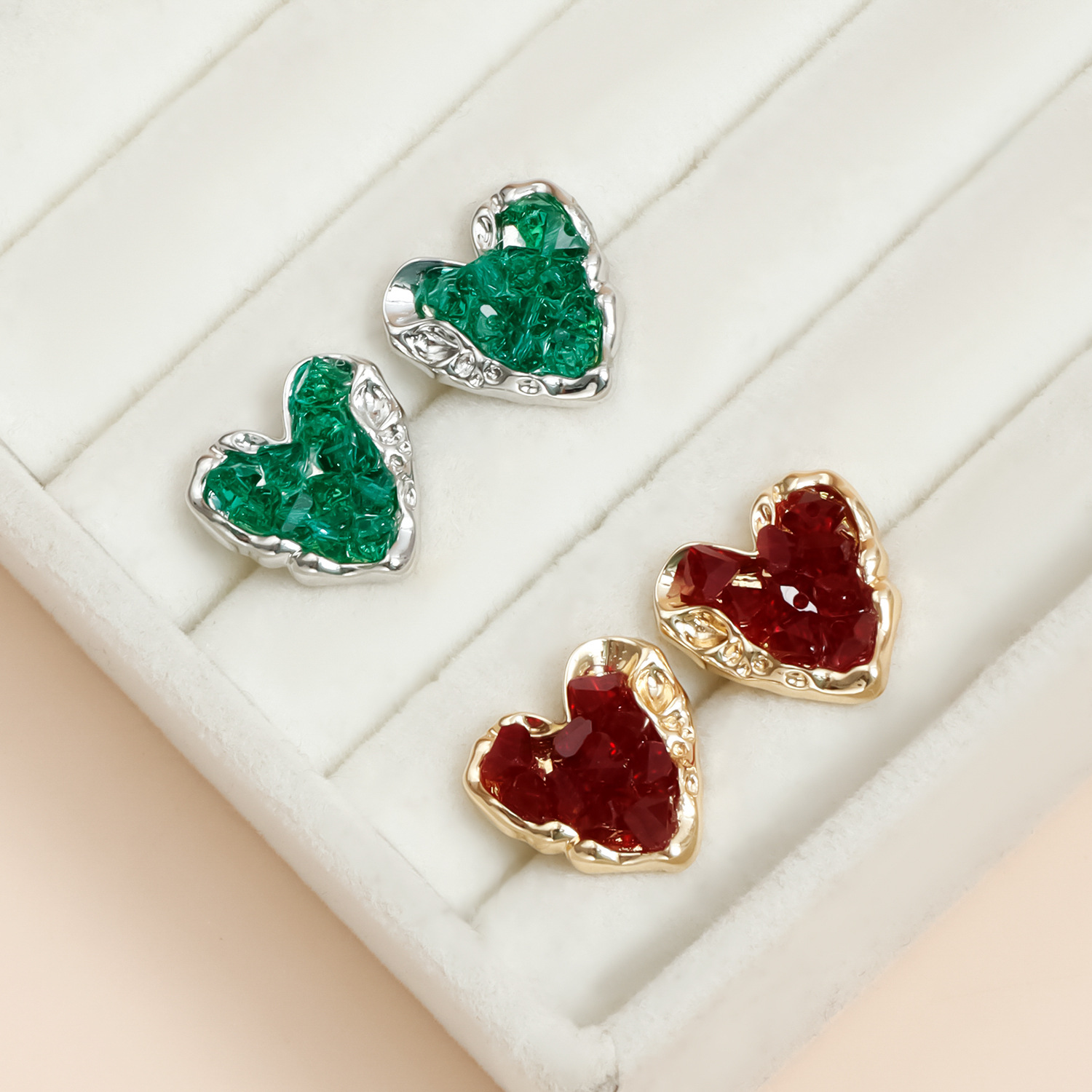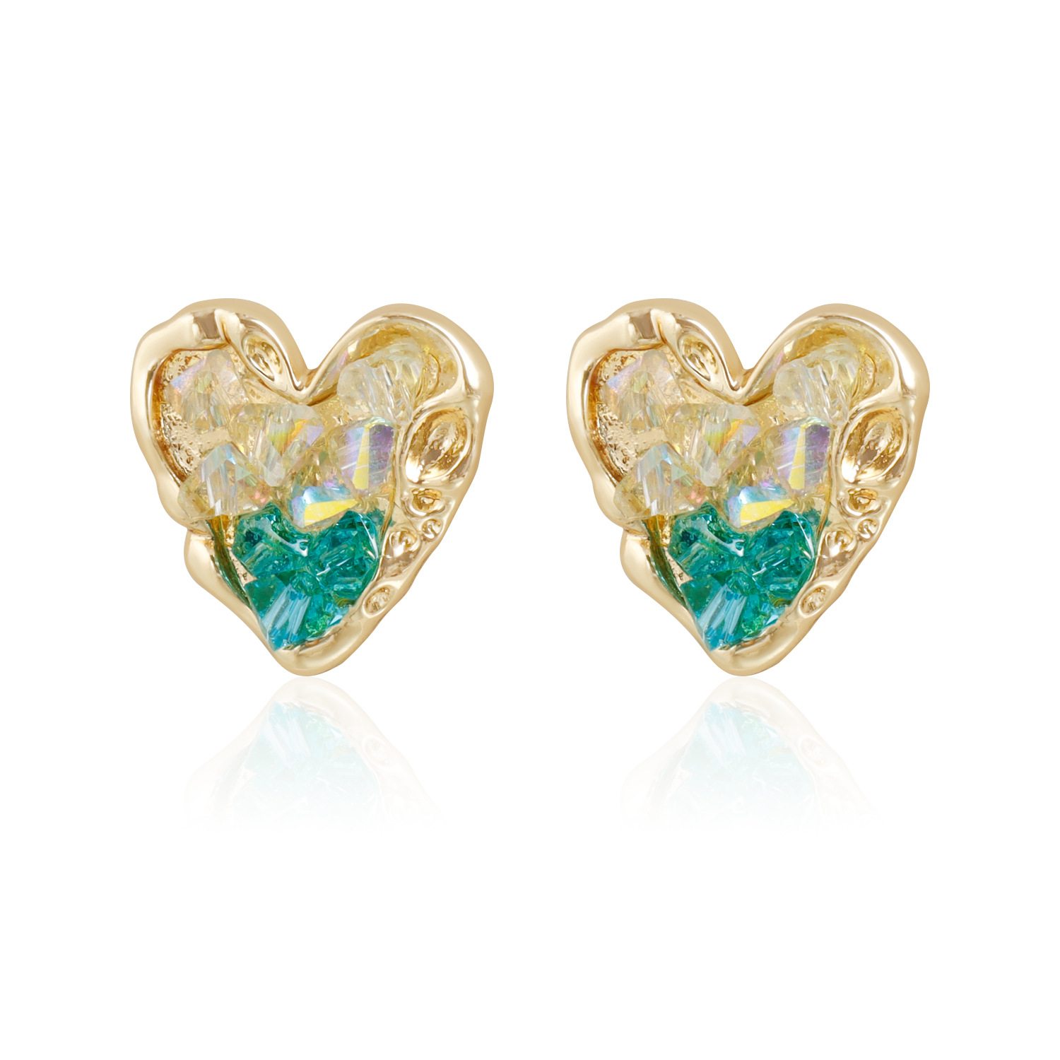 laiton boucle d oreille dormeuse, avec cristal, coeur, Plaqué de couleur d'or rose, facettes & avec strass, plus de couleurs à choisir, protéger l'environnement, sans nickel, plomb et cadmium Vendu par paire