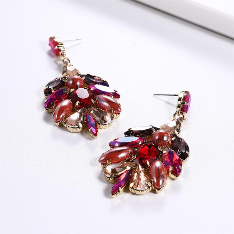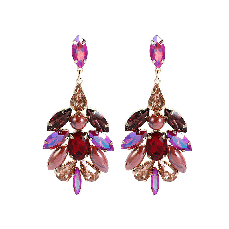 Boucle d'oreille de goutte en cristal, alliage de zinc, avec cristal & perle de plastique, feuille, bijoux de mode & pour femme, plus de couleurs à choisir, 76x32mm, Vendu par paire