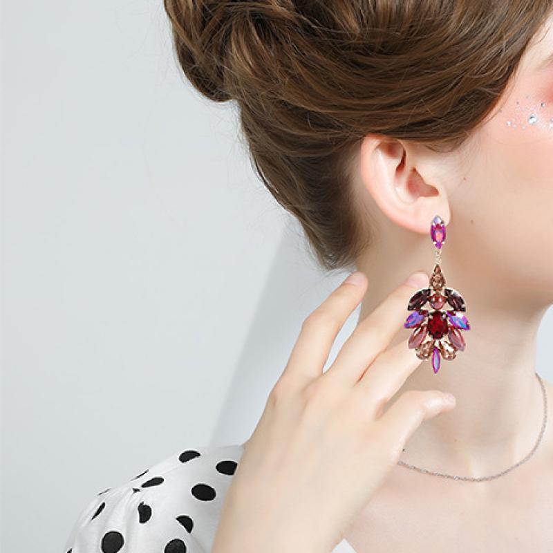 Boucle d'oreille de goutte en cristal, alliage de zinc, avec cristal, Placage de couleur d'or, sans embout de boucle d'oreille & avec strass, protéger l'environnement, sans nickel, plomb et cadmium Vendu par lot