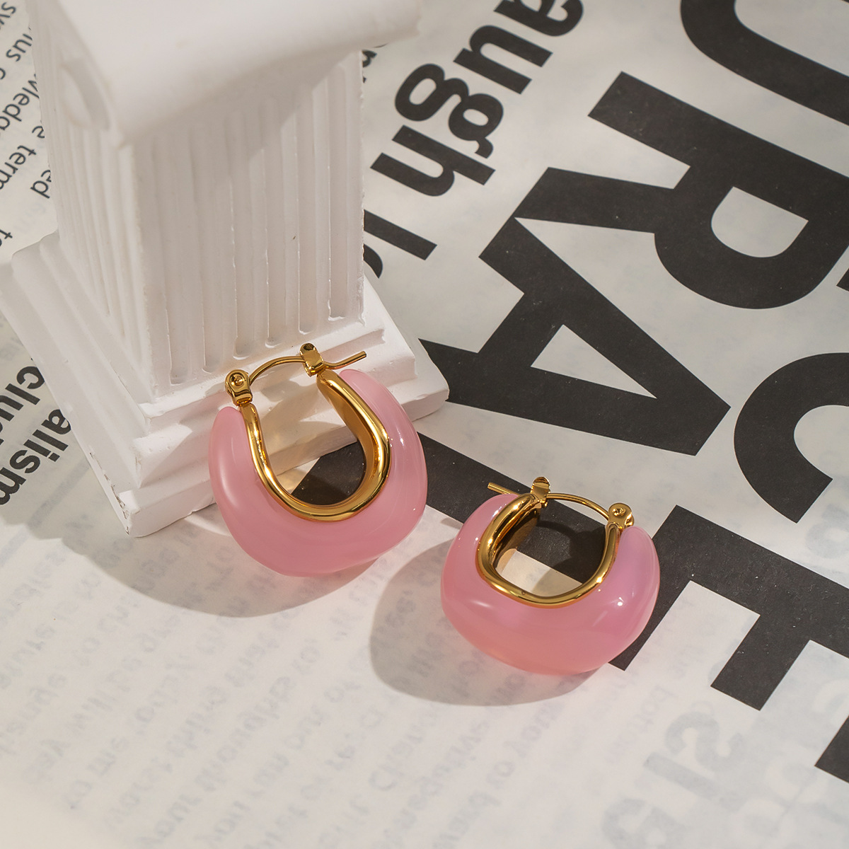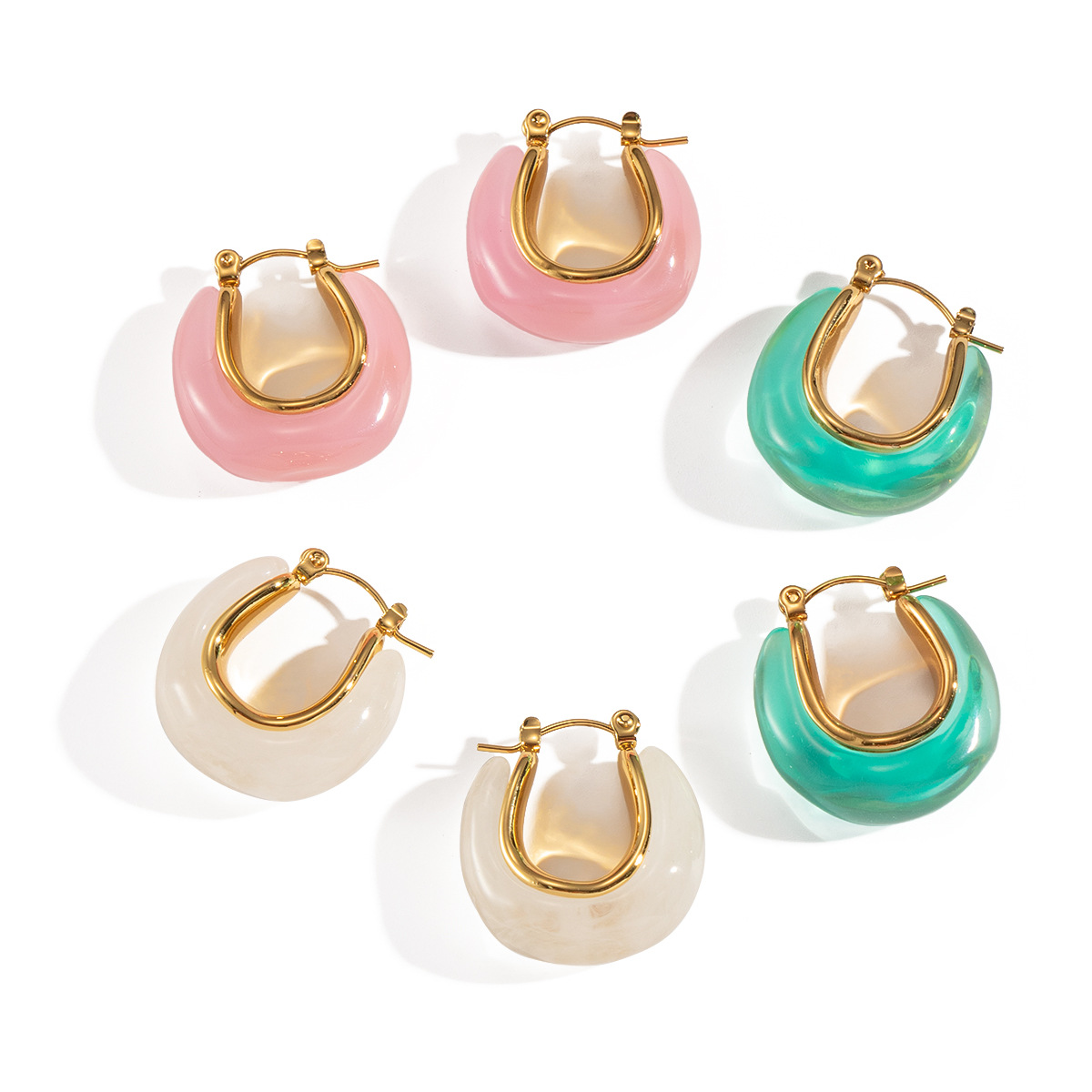 Boucle d'oreille en acier inoxydable Dangle, Acier inoxydable 304, avec résine, Placage de couleur d'or, bijoux de mode, plus de couleurs à choisir, Vendu par paire