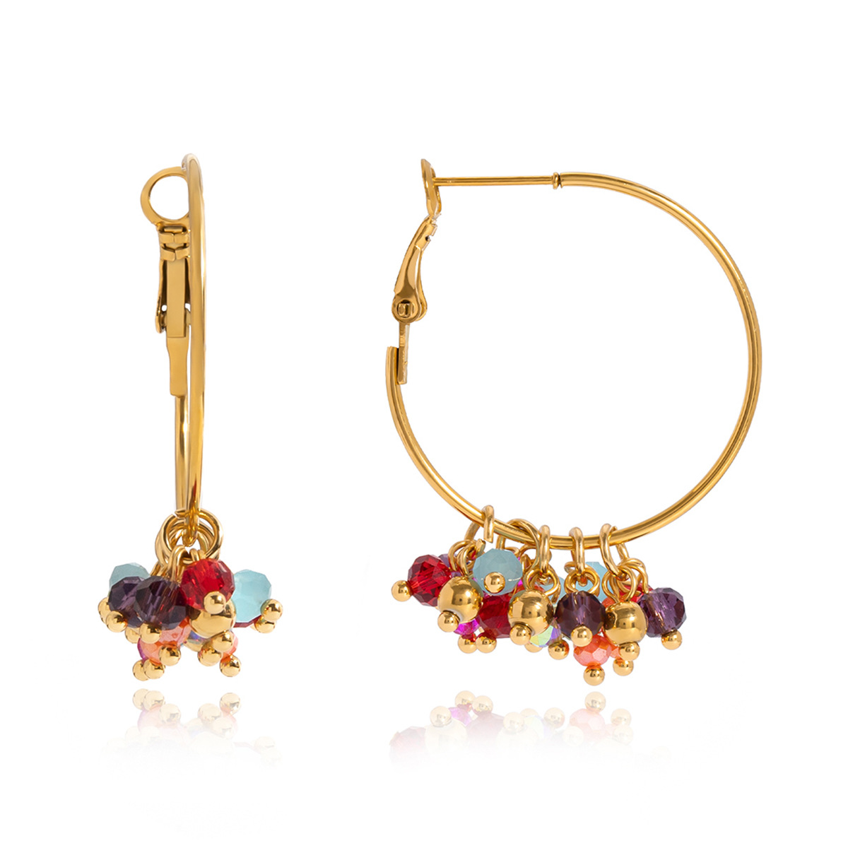 Boucle d'oreille en acier inoxydable Dangle, Acier inoxydable 304, avec cristal, Placage de couleur d'or, bijoux de mode, plus de couleurs à choisir, Vendu par paire