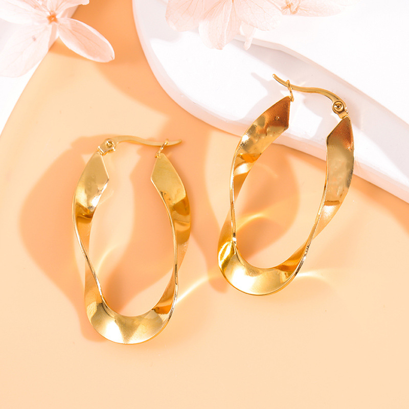 Boucle d'oreille en acier inoxydable Dangle, Acier inoxydable 304, Plaqué or 18K, bijoux de mode & Polis à la main & pour femme, Vendu par paire