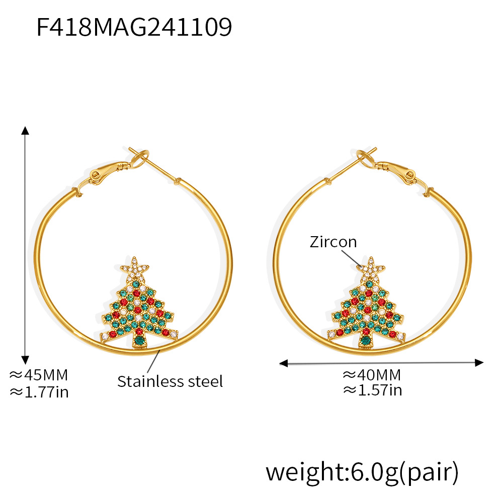 Boucle d'oreille en acier inoxydable Dangle, Acier inoxydable 304, Conception de Noël & pavé de micro zircon & pour femme, doré, Vendu par paire