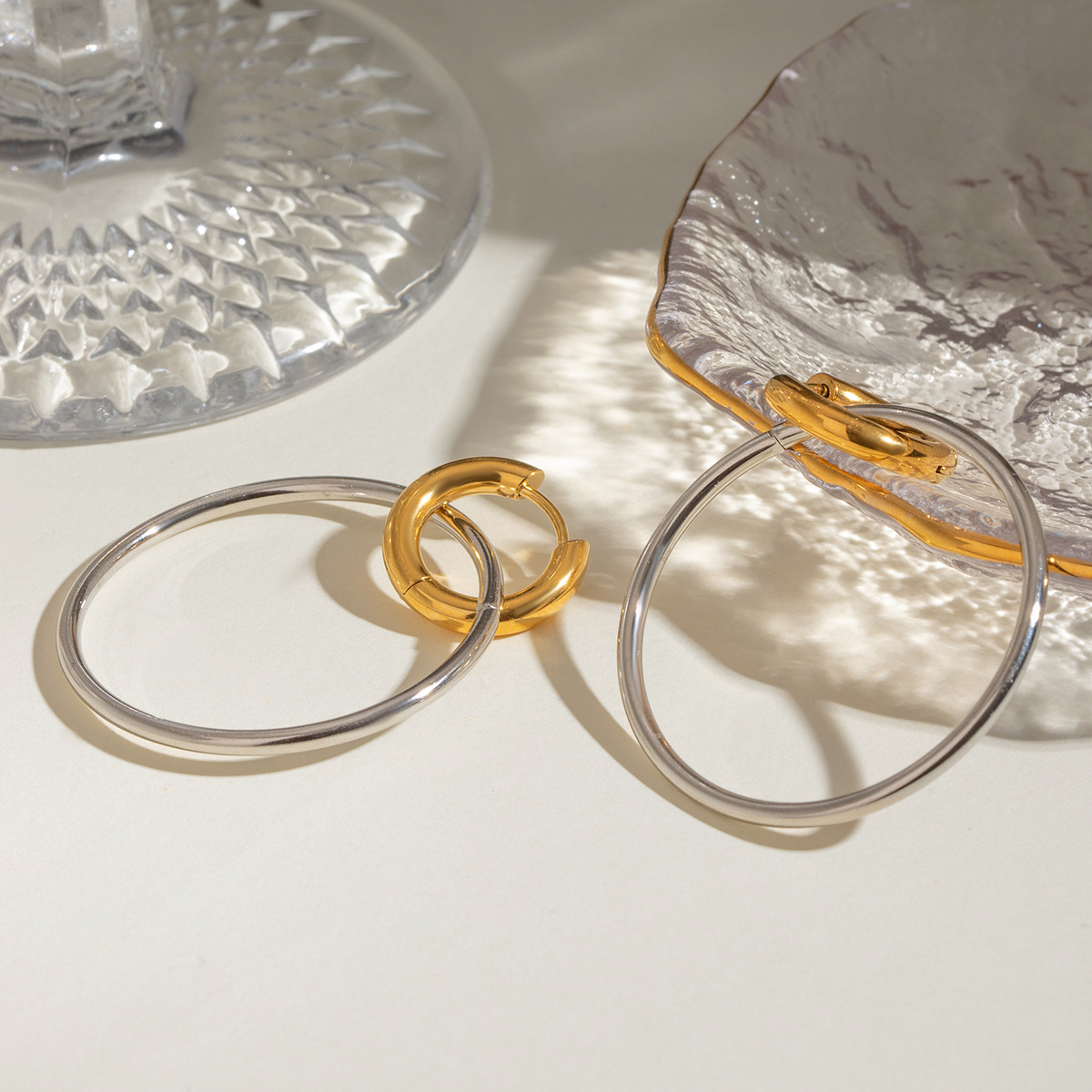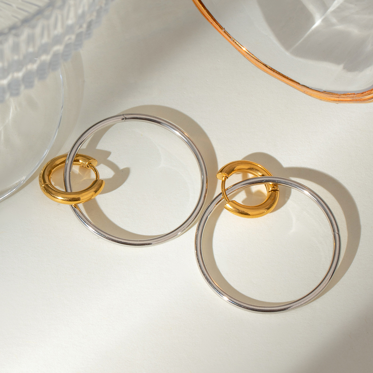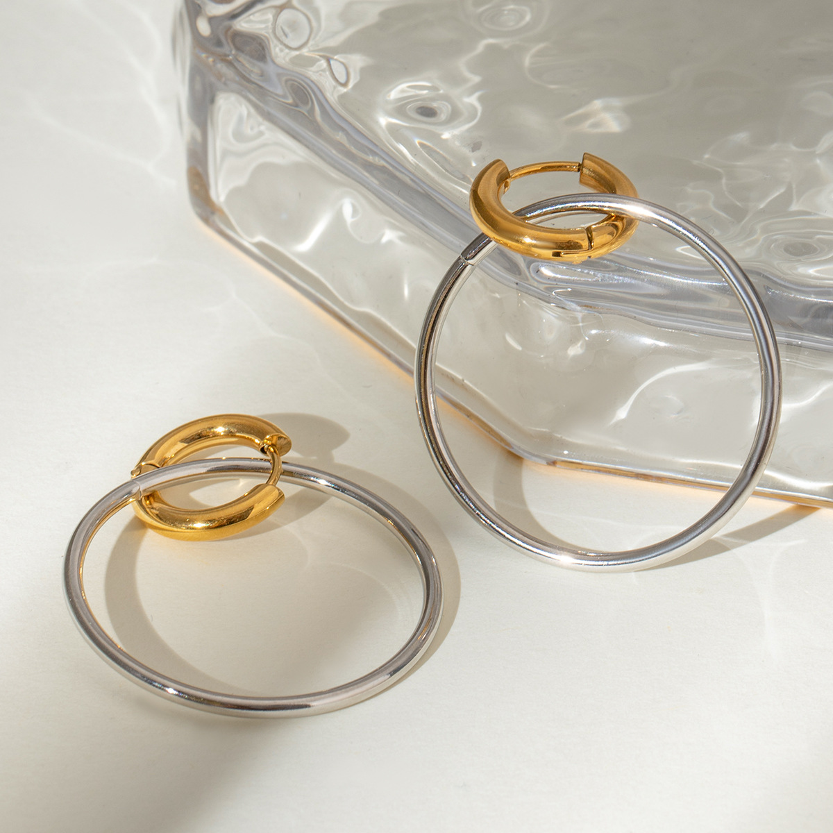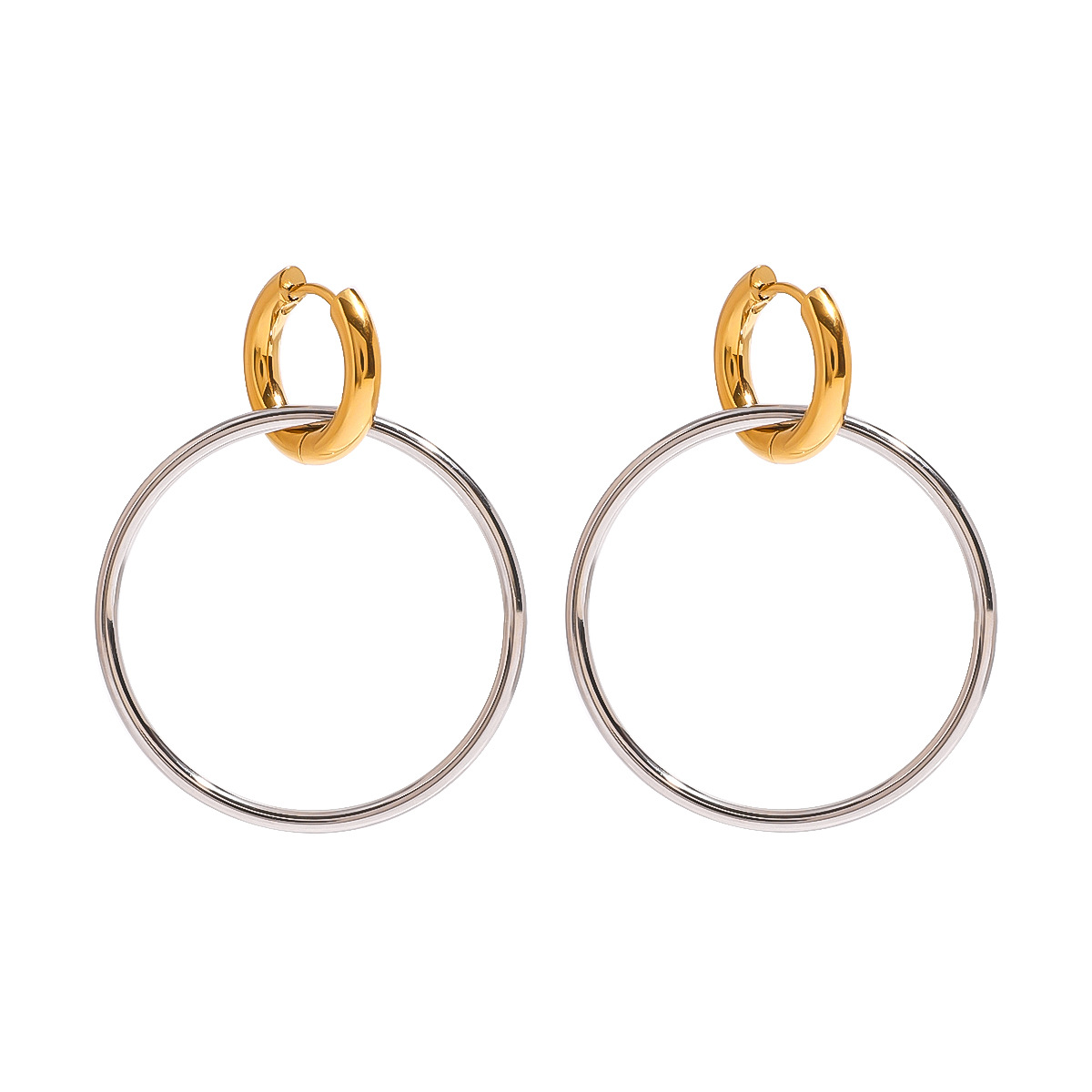 Boucle d'oreille en acier inoxydable Hoop, Acier inoxydable 304, Placage, pour femme & deux tons & creux, Vendu par paire