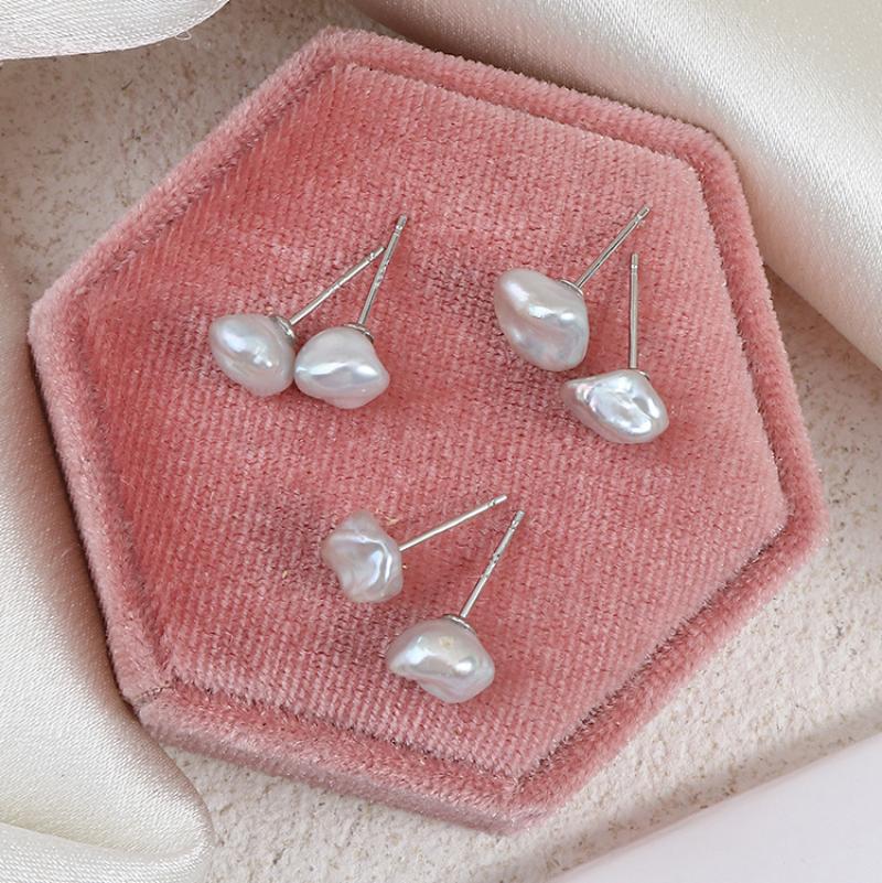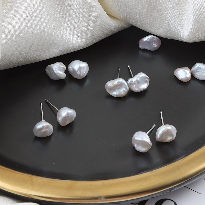 Boucle d'oreille en argent sterling Stud perle naturelle, argent sterling 925, avec perle d'eau douce cultivée, Baroque, bijoux de mode, couleurs mélangées, 7-8mm, Vendu par paire