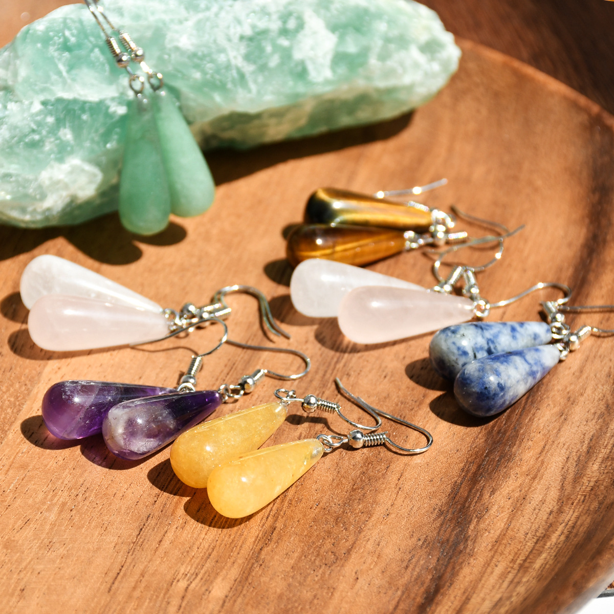 Boucle d'oreille en demi-gemme , lave volcanique, laiton boucle d'oreille crochet, plus de couleurs à choisir Environ 2.3 pouce, Vendu par paire
