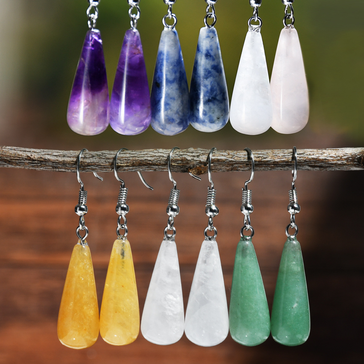Boucle d'oreille en demi-gemme , alliage de zinc, avec Pierre naturelle, larme, fait à la main, bijoux de mode & différents matériaux pour le choix & pour femme, Vendu par paire