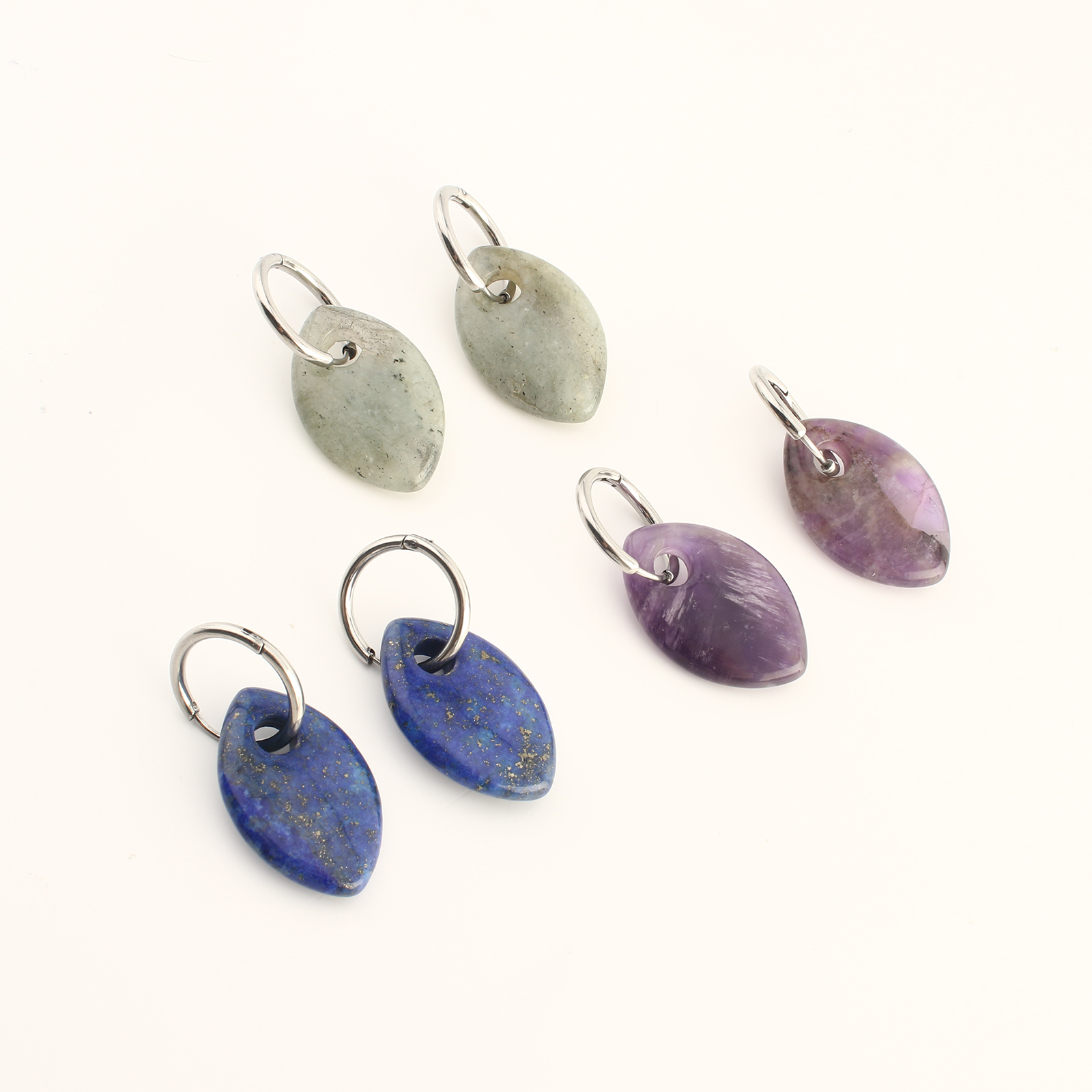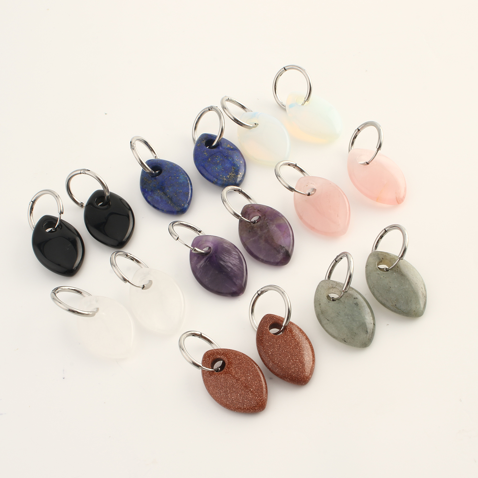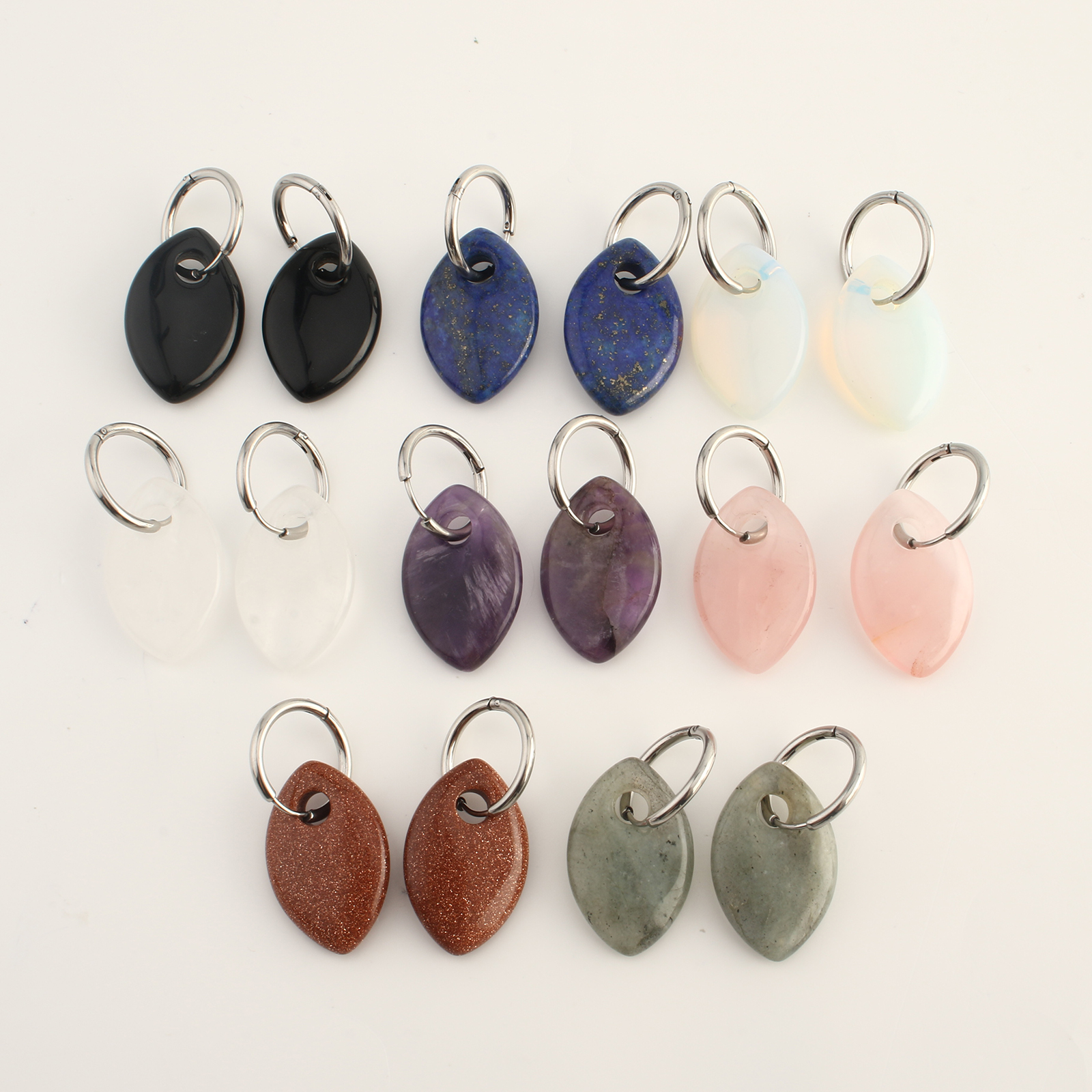 Boucle d'oreille en demi-gemme , lave volcanique, laiton boucle d'oreille crochet, plus de couleurs à choisir, 15-16x9-10mm Environ 2.4 pouce, Vendu par paire