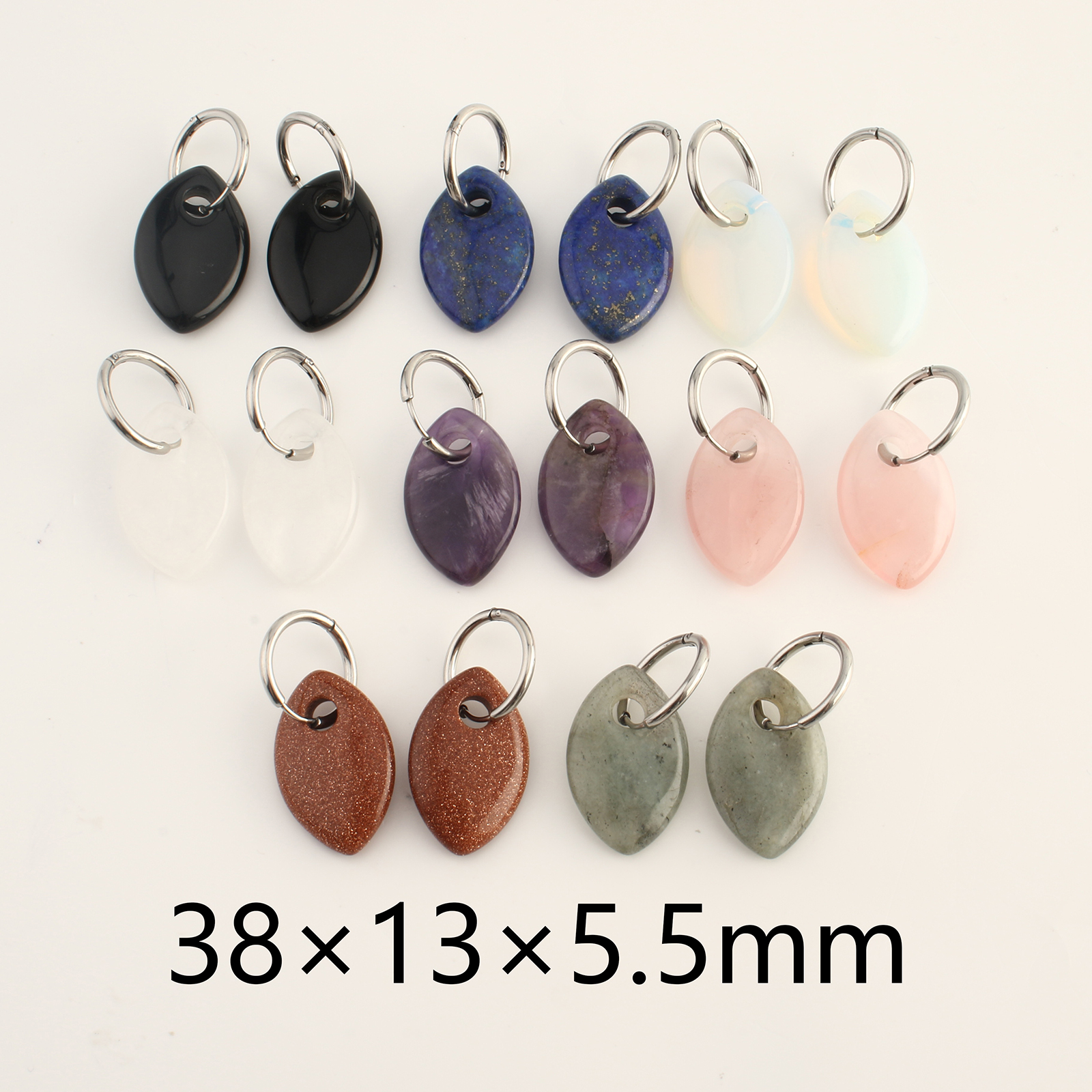 Boucle d'oreille en demi-gemme , pierre gemme, avec Acier inoxydable 304, bijoux de mode & différents matériaux pour le choix & pour femme, 38x13x5.5mm, Vendu par paire