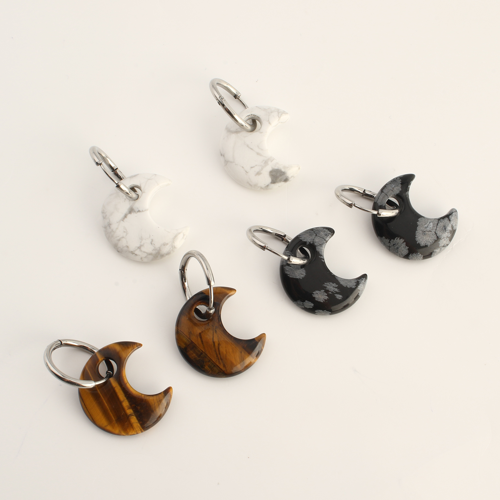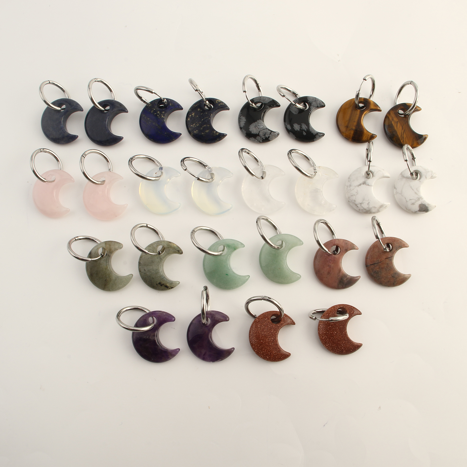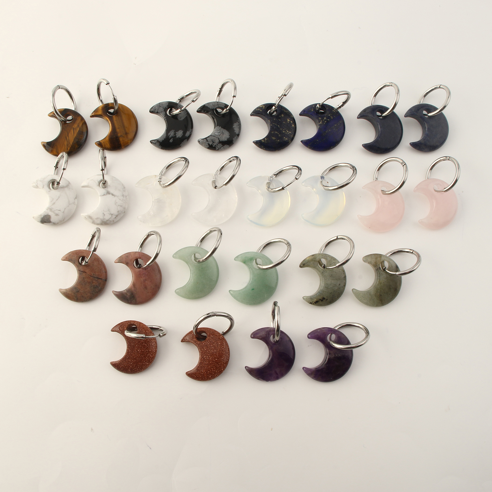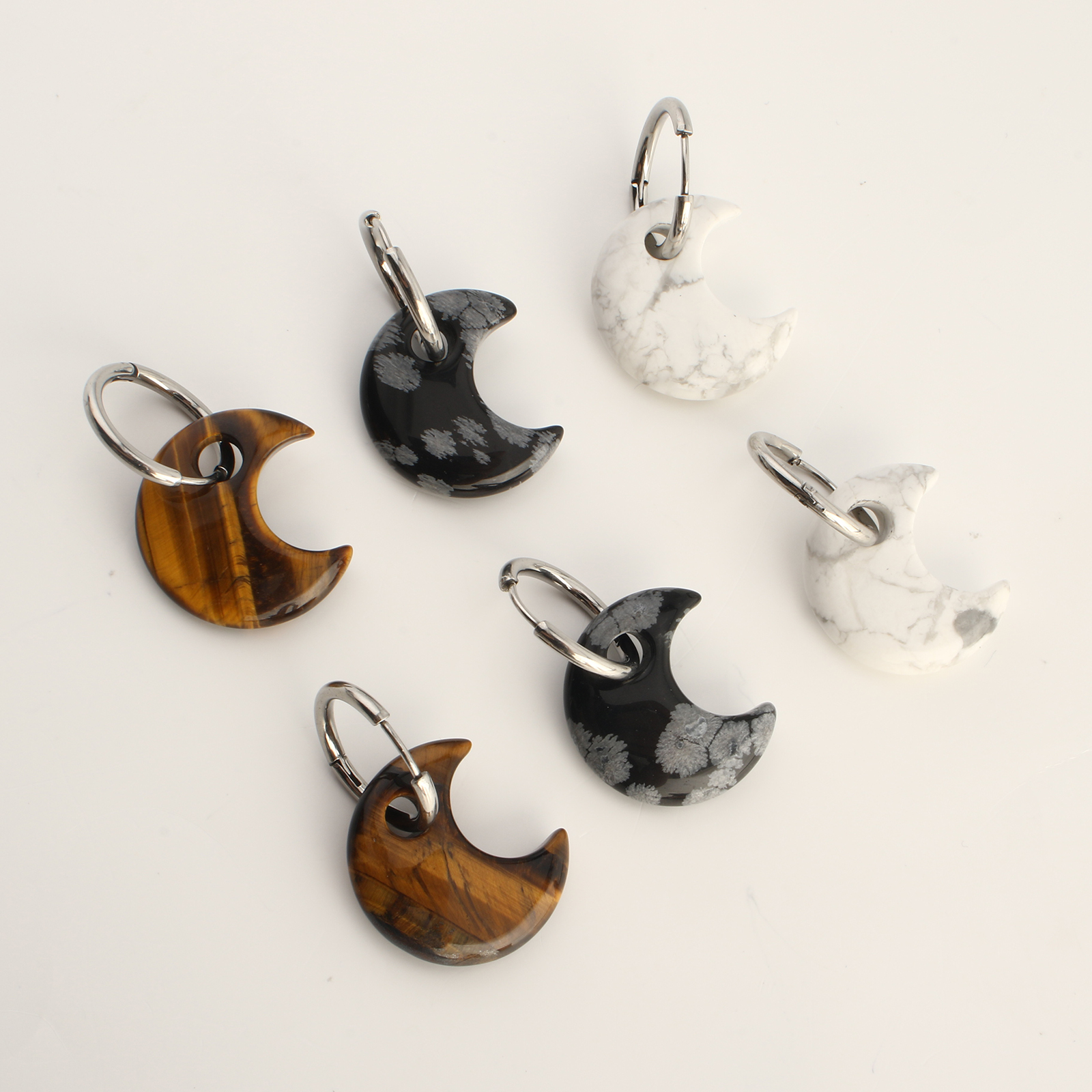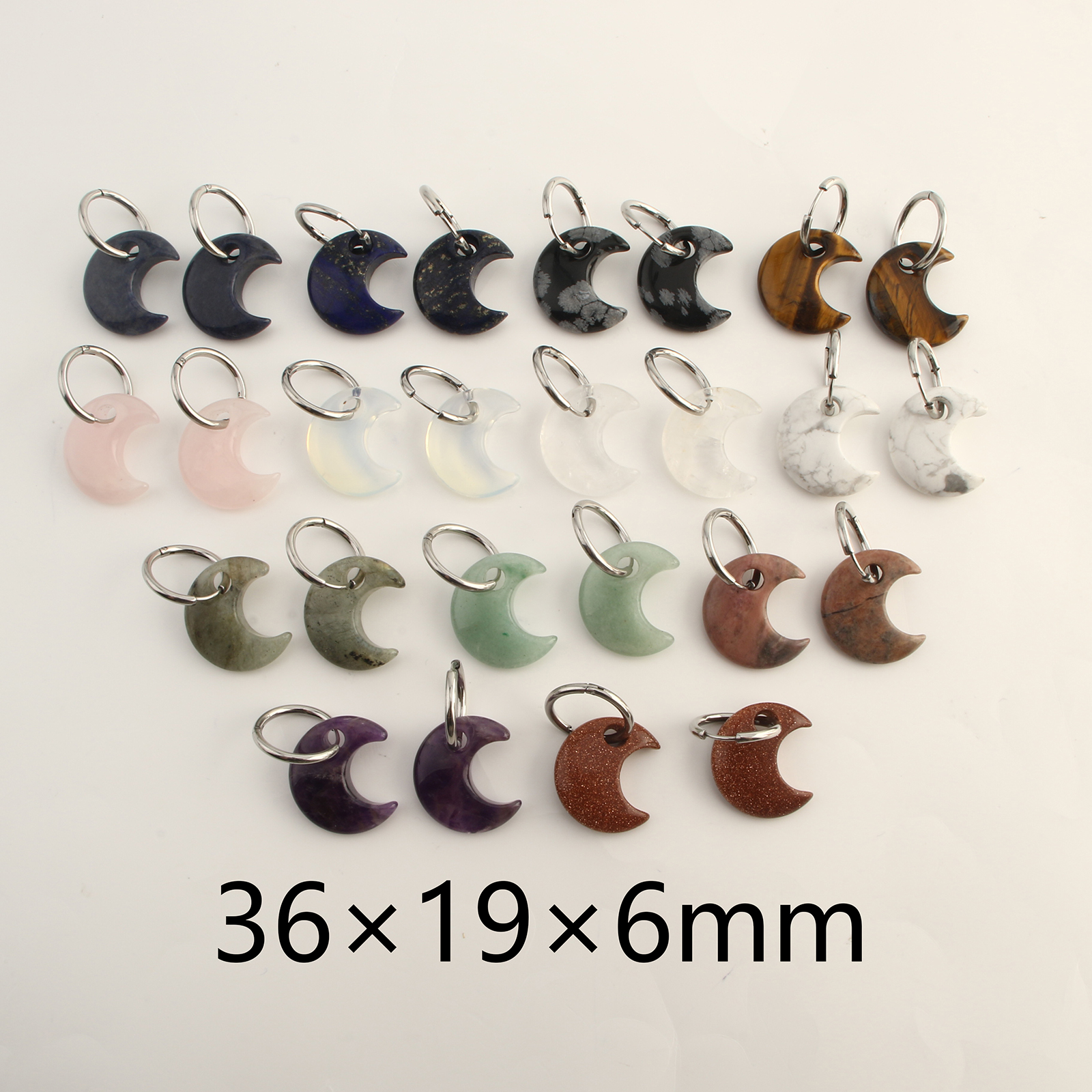 Boucle d'oreille en demi-gemme , pierre gemme, avec Acier inoxydable 304, lune, bijoux de mode & différents matériaux pour le choix & pour femme, 36x19x6mm, Vendu par paire