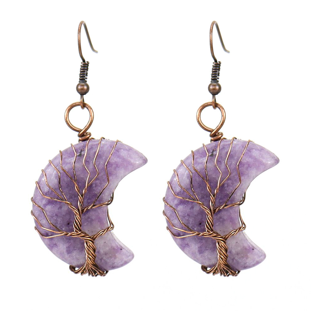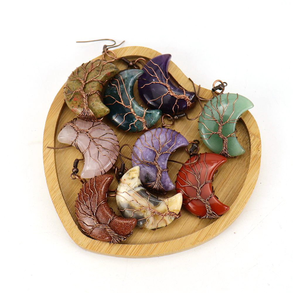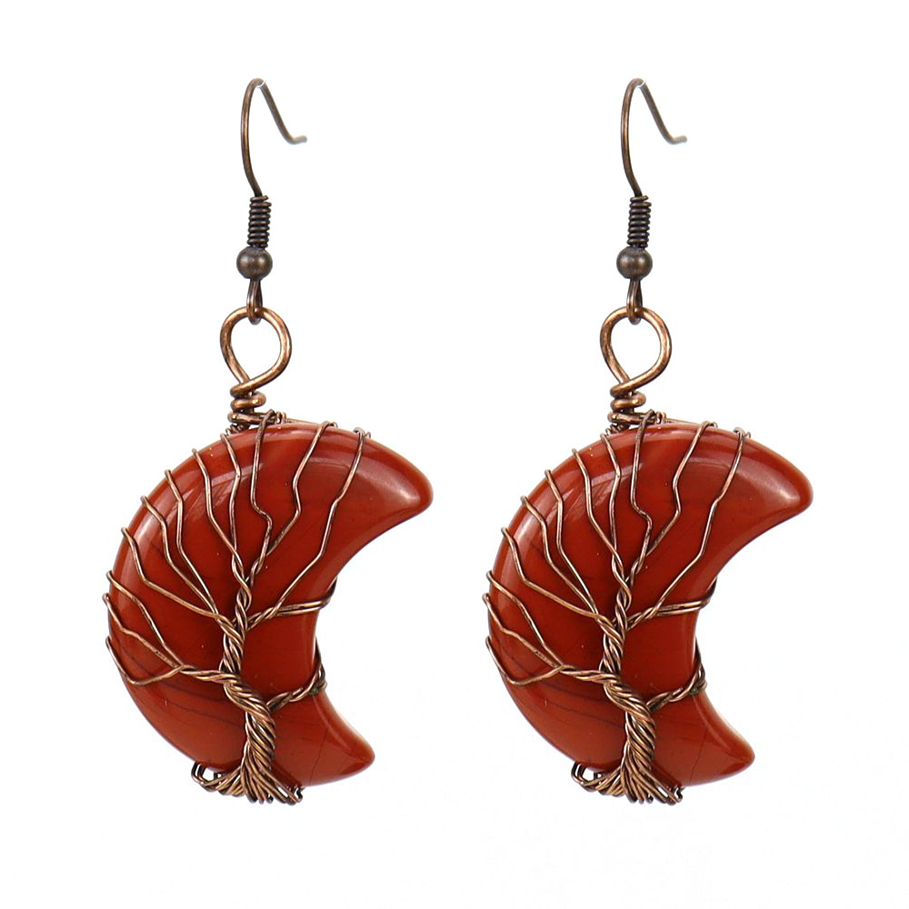 Boucle d'oreille en demi-gemme , Pierre naturelle, avec laiton, lune, fait à la main, différents matériaux pour le choix & normes différentes pour le choix & pour femme, couleur cuivre antique, Vendu par paire