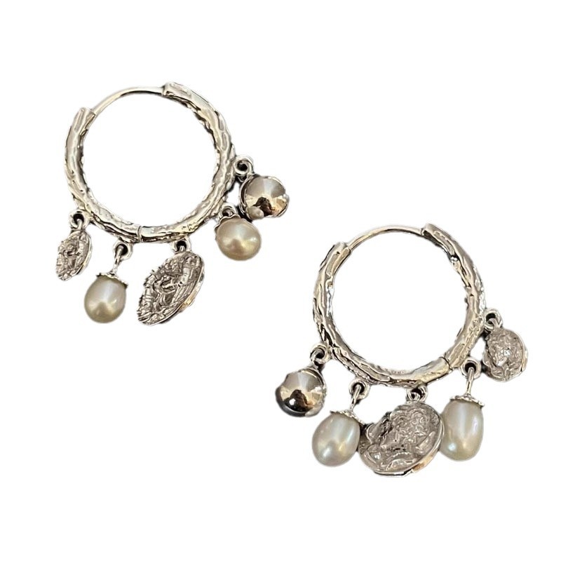 Boucle d'oreille en goutte de laiton, Plat rond, Plaqué d'argent, sans plomb et cadmium Vendu par paire