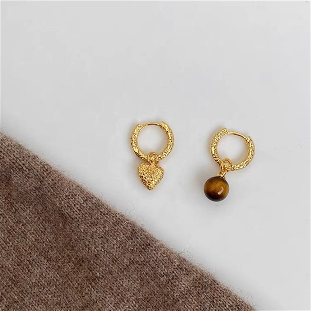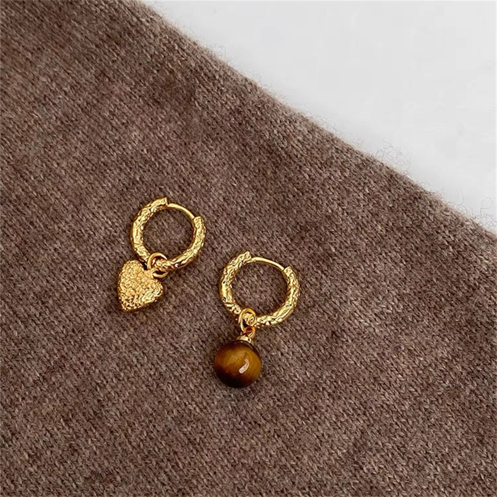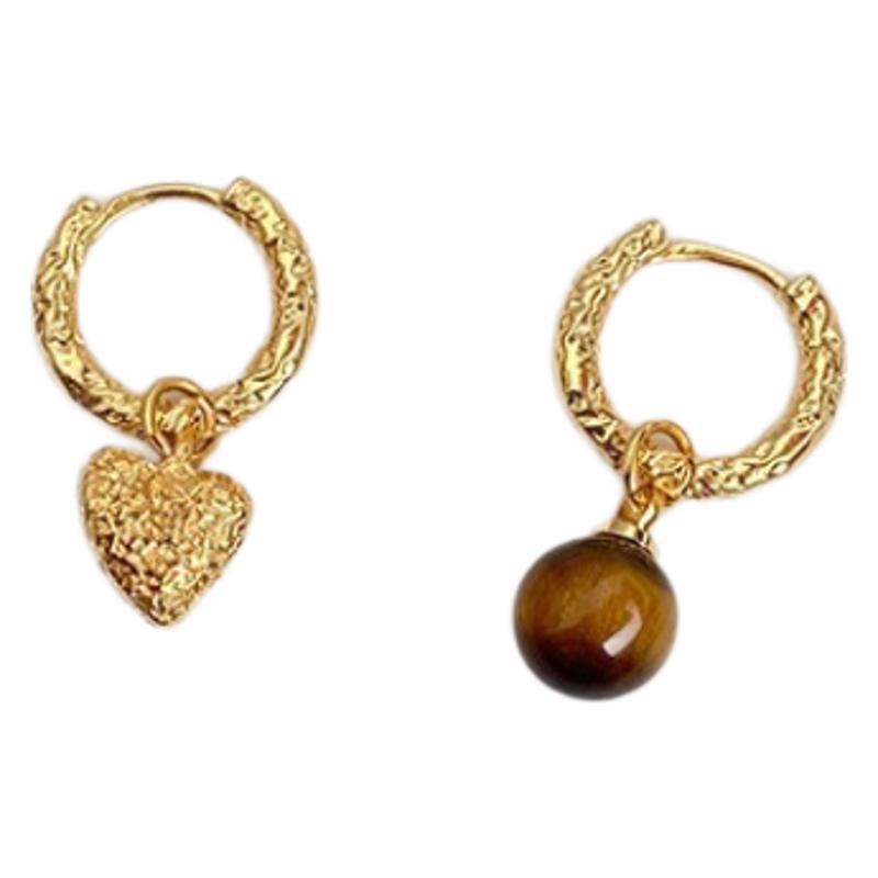 Boucle d'oreille en goutte de laiton, avec oeil de tigre, Placage, bijoux de mode, couleurs mélangées, 11.6x21mm, Vendu par paire